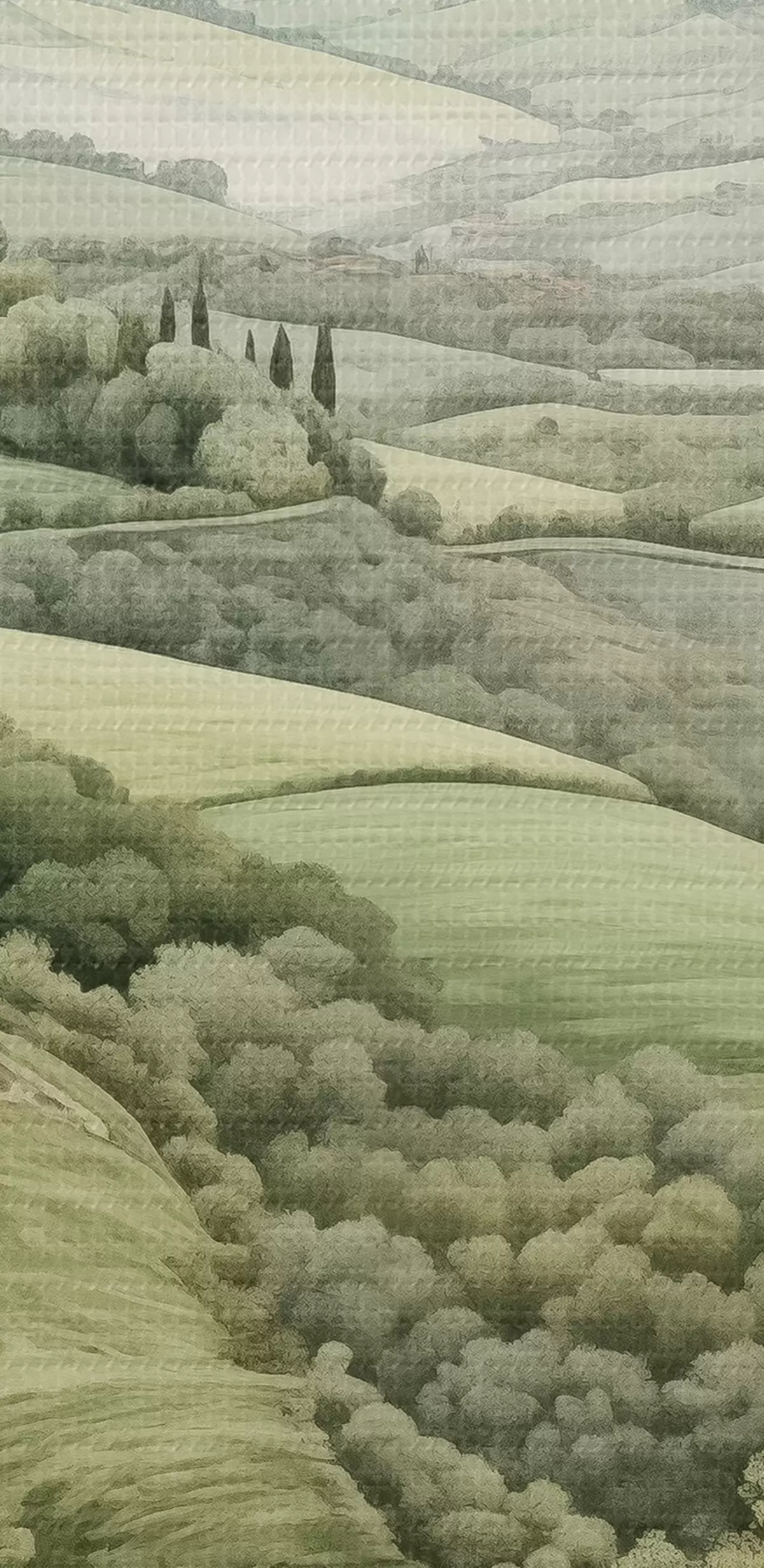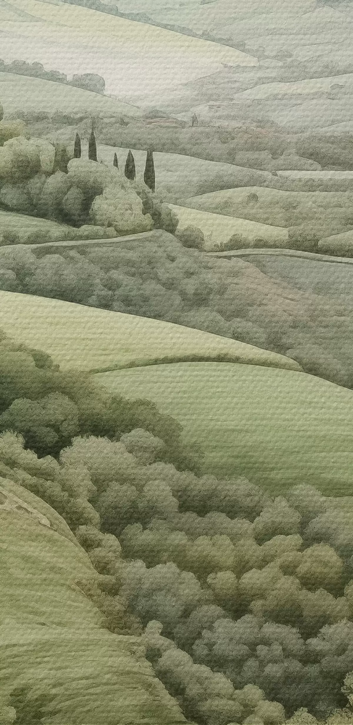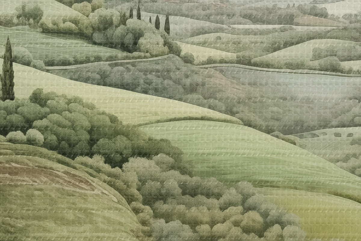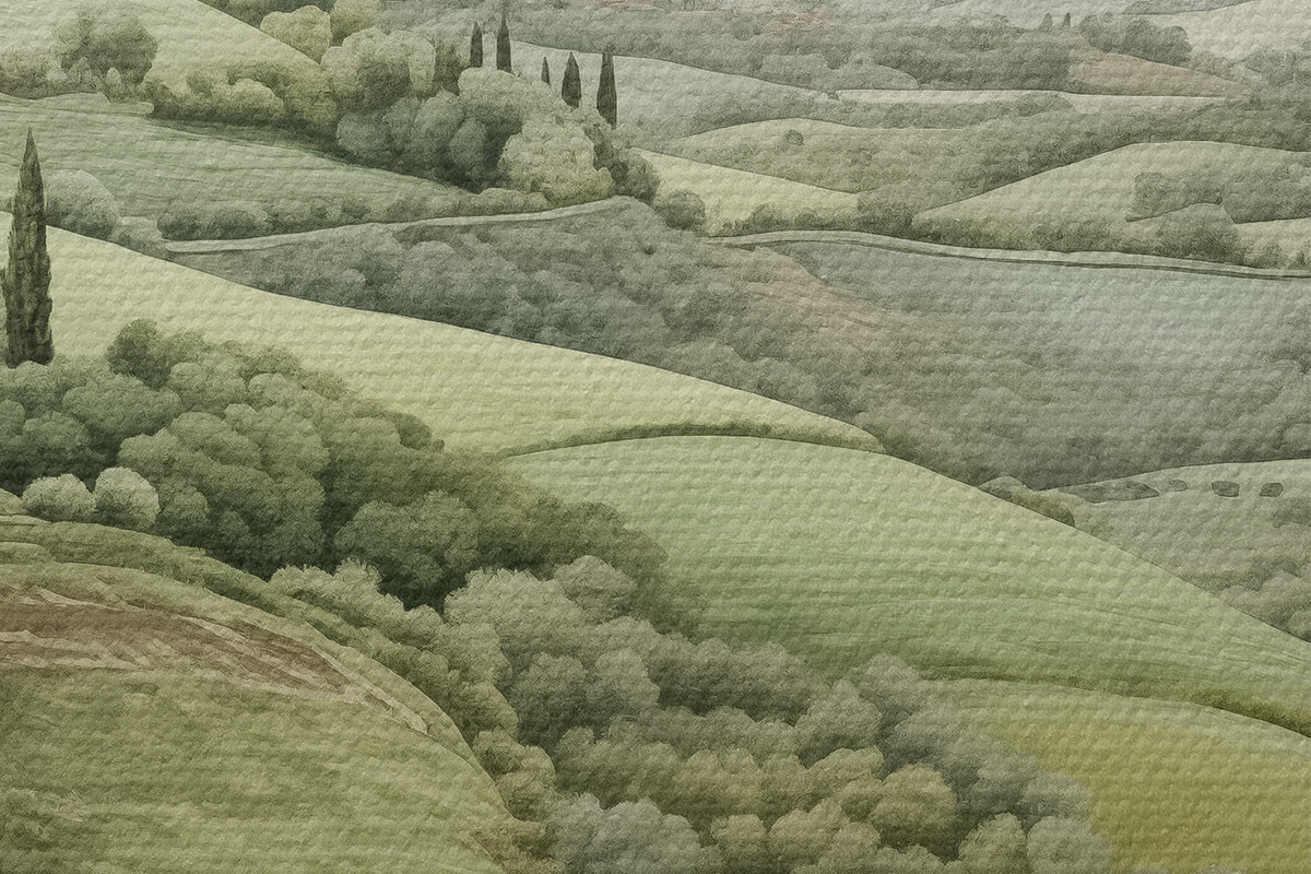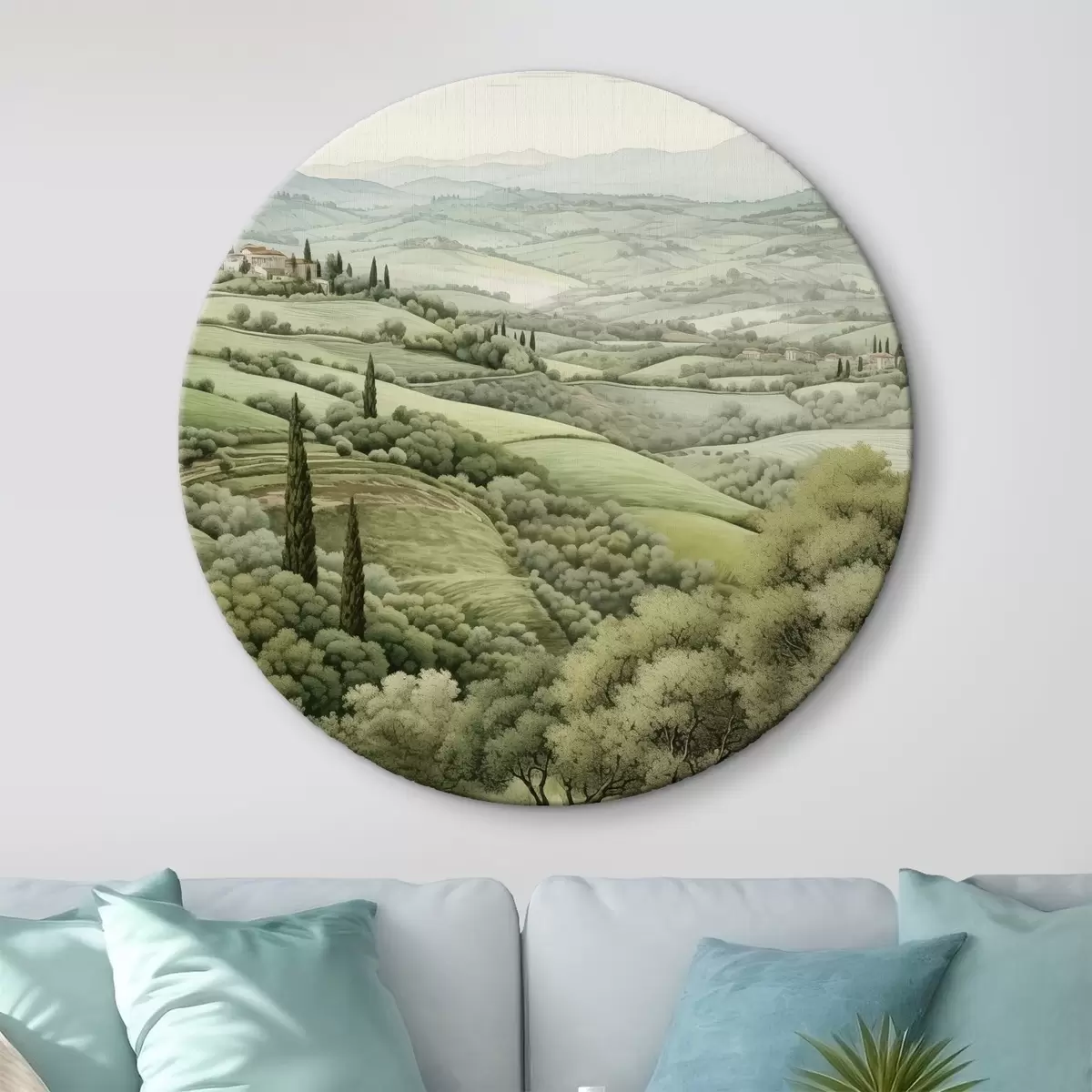 Picturi rotunde Peisaje în acuarelă cu copaci și munți, Toscana, vară Nr r41222
