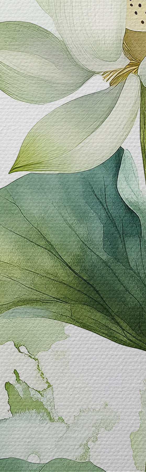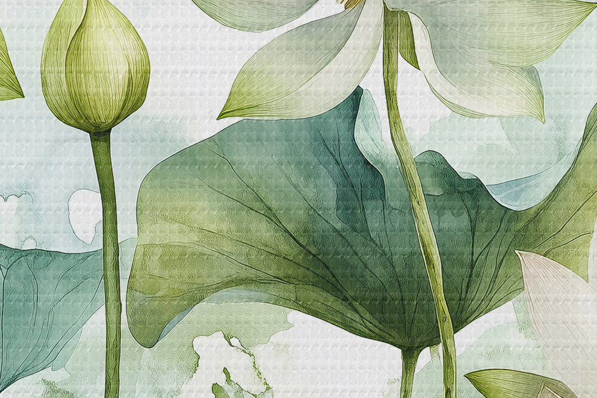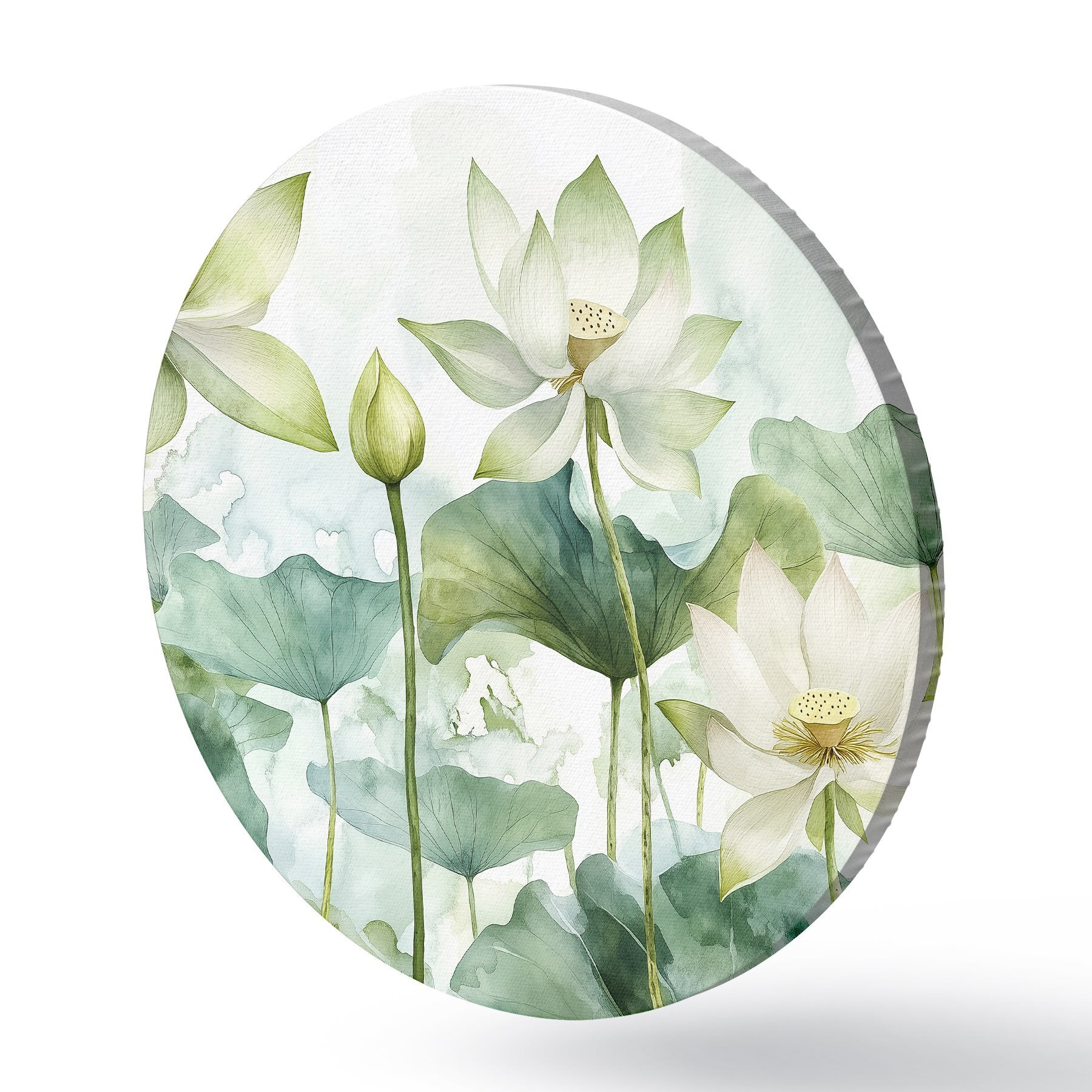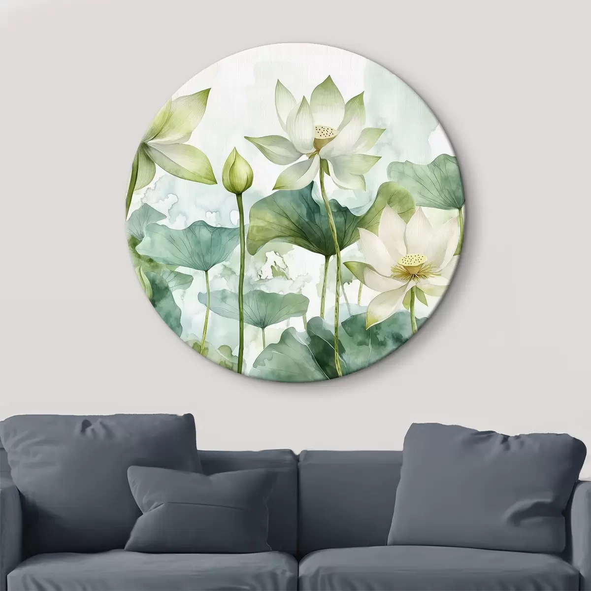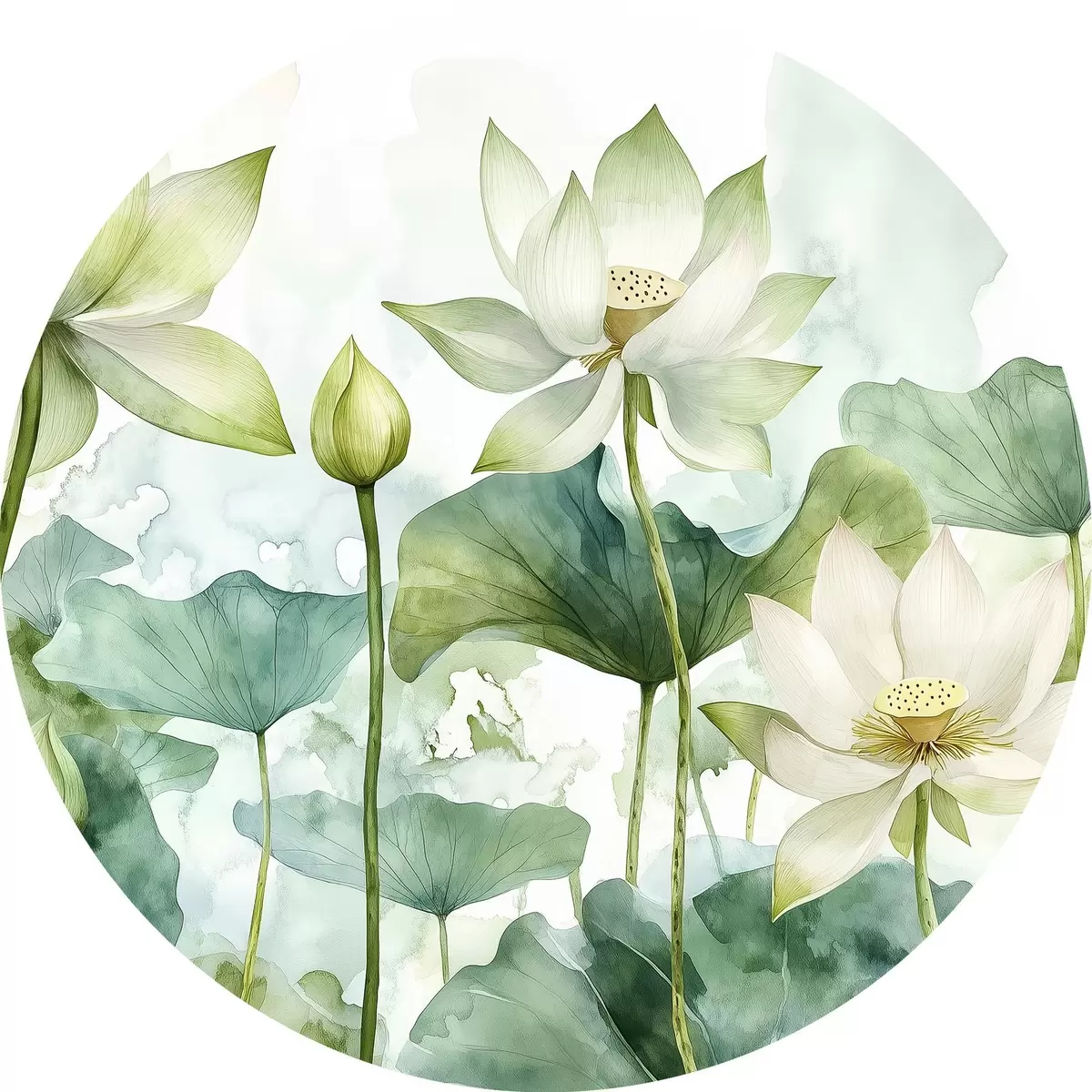 Picturi rotunde Lotuși acuarelă, verdeață luxuriantă r41226