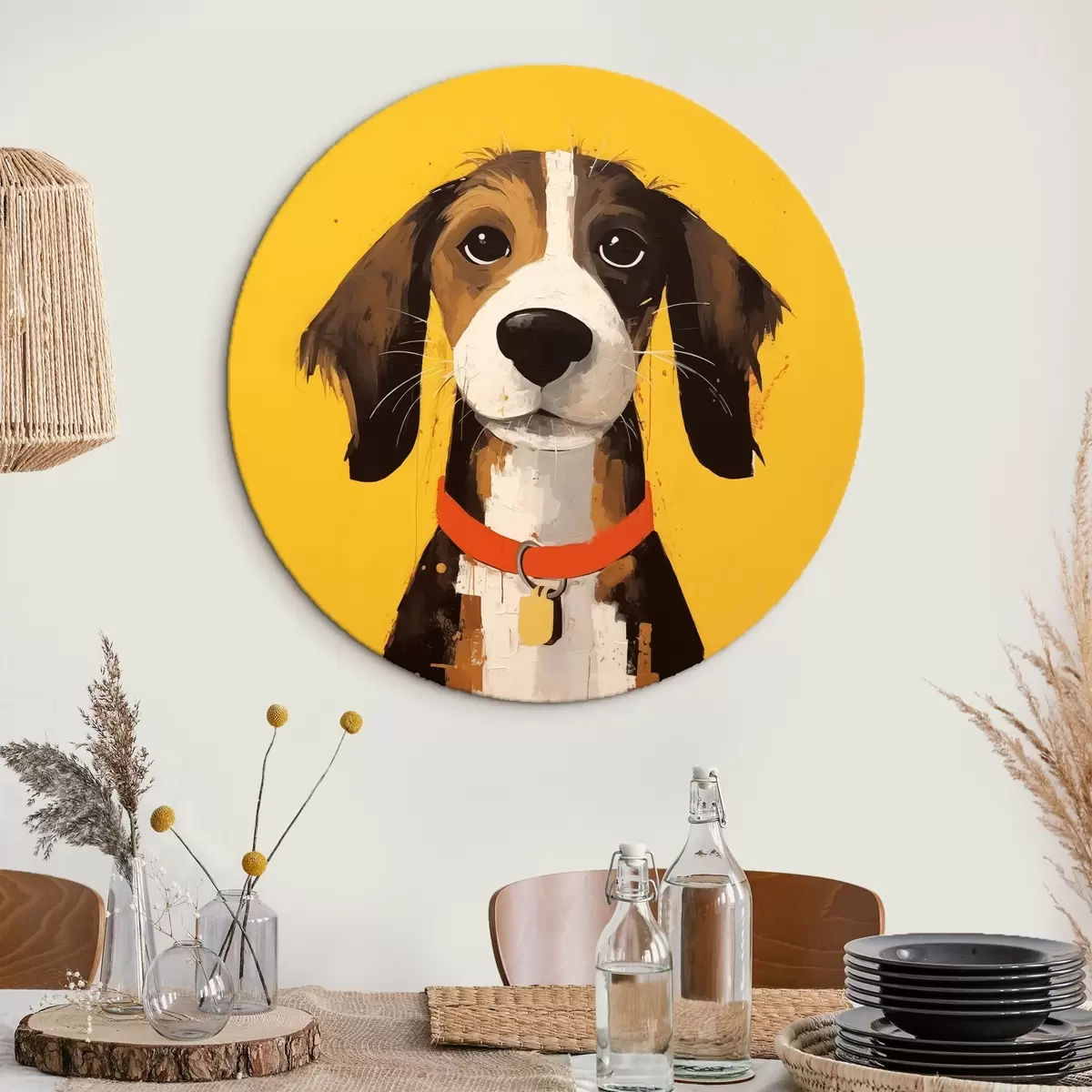 Picturi rotunde Portret de câine pe un fundal galben Nr r41232