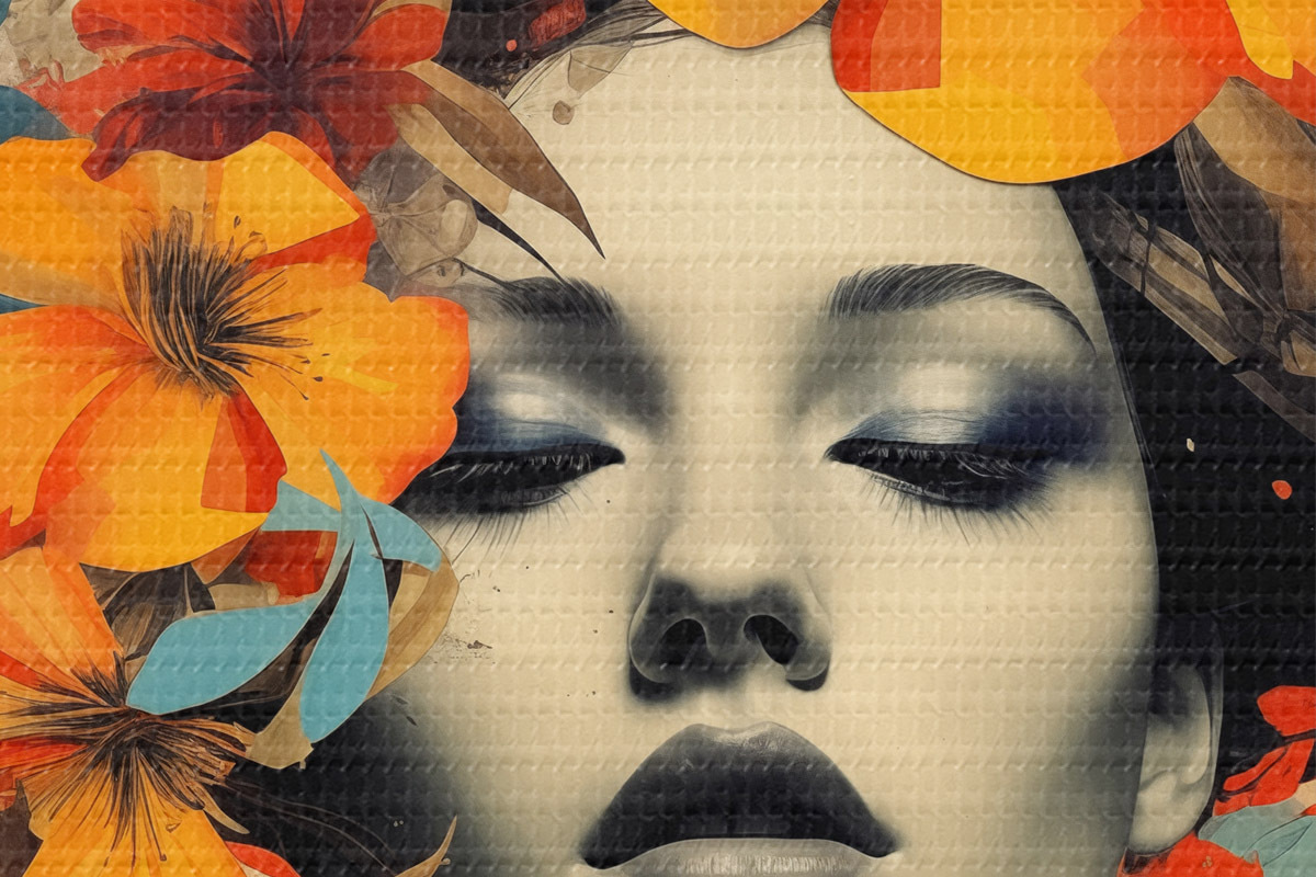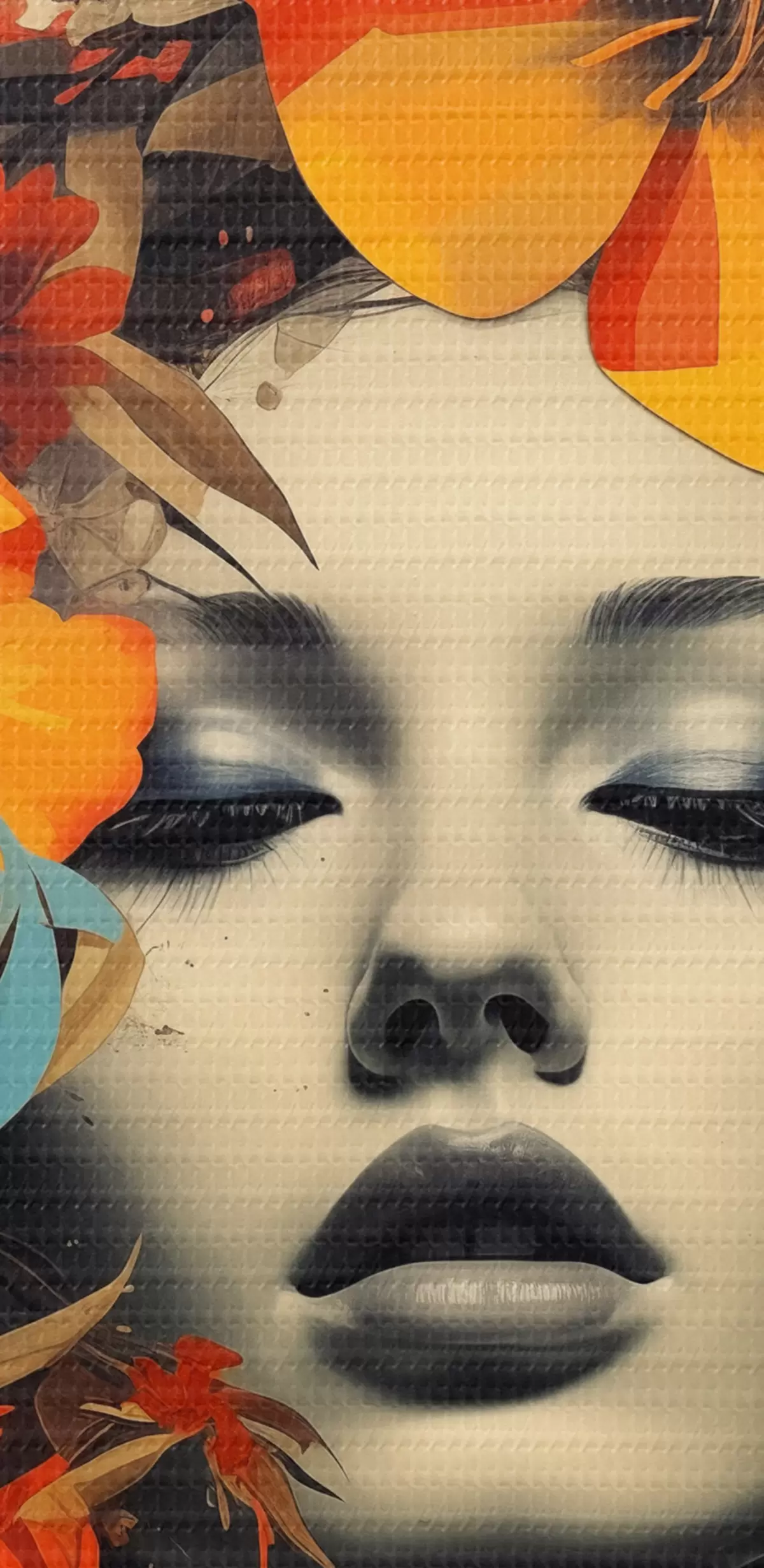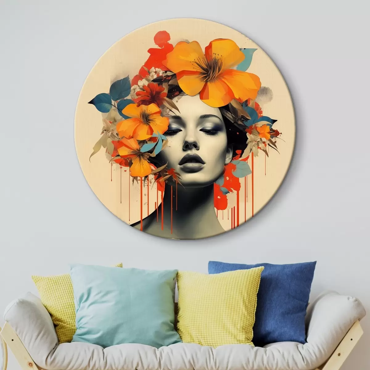 Picturi rotunde Colaj stil fata portret cu flori r41271