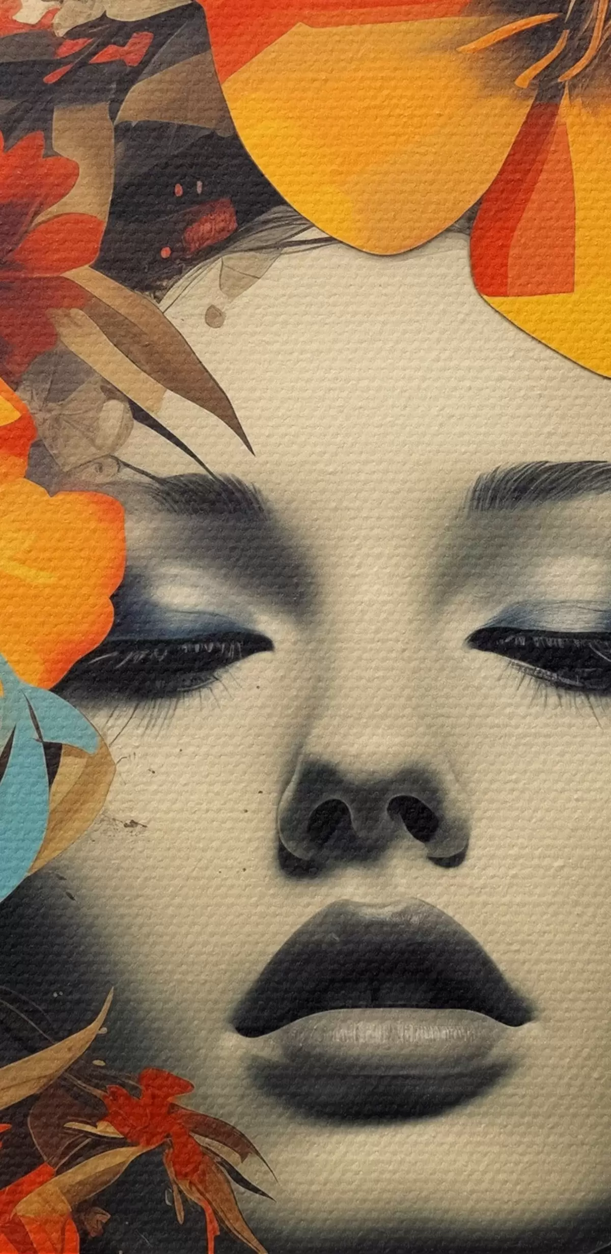 Picturi rotunde Colaj stil fata portret cu flori Nr r41271