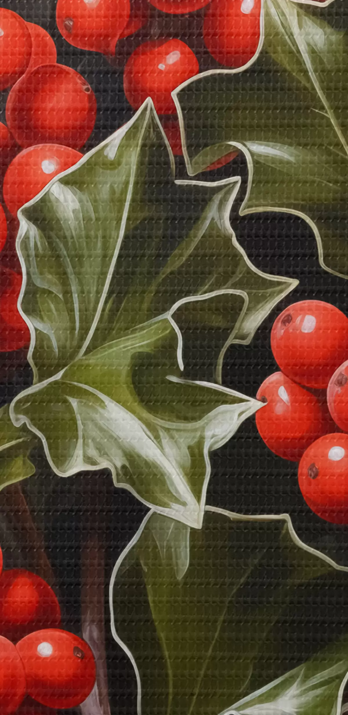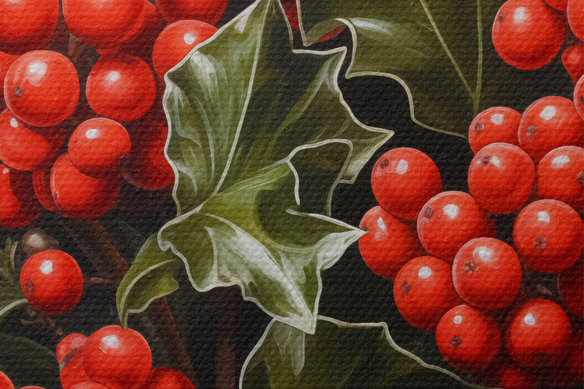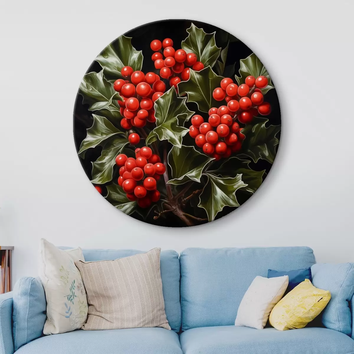 Picturi rotunde Holly fructe de pădure și frunze pe un fundal întunecat Nr r41273