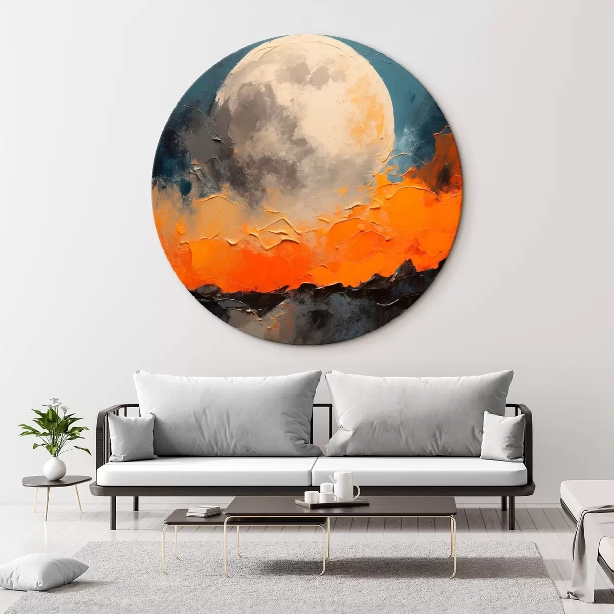Picturi rotunde Pictură abstractă în ulei cu luna r41286