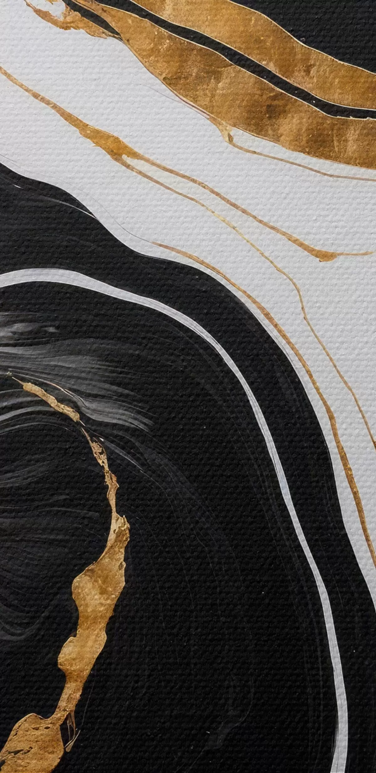 Picturi rotunde Imagine abstractă alb-negru cu pete galbene Nr r41292