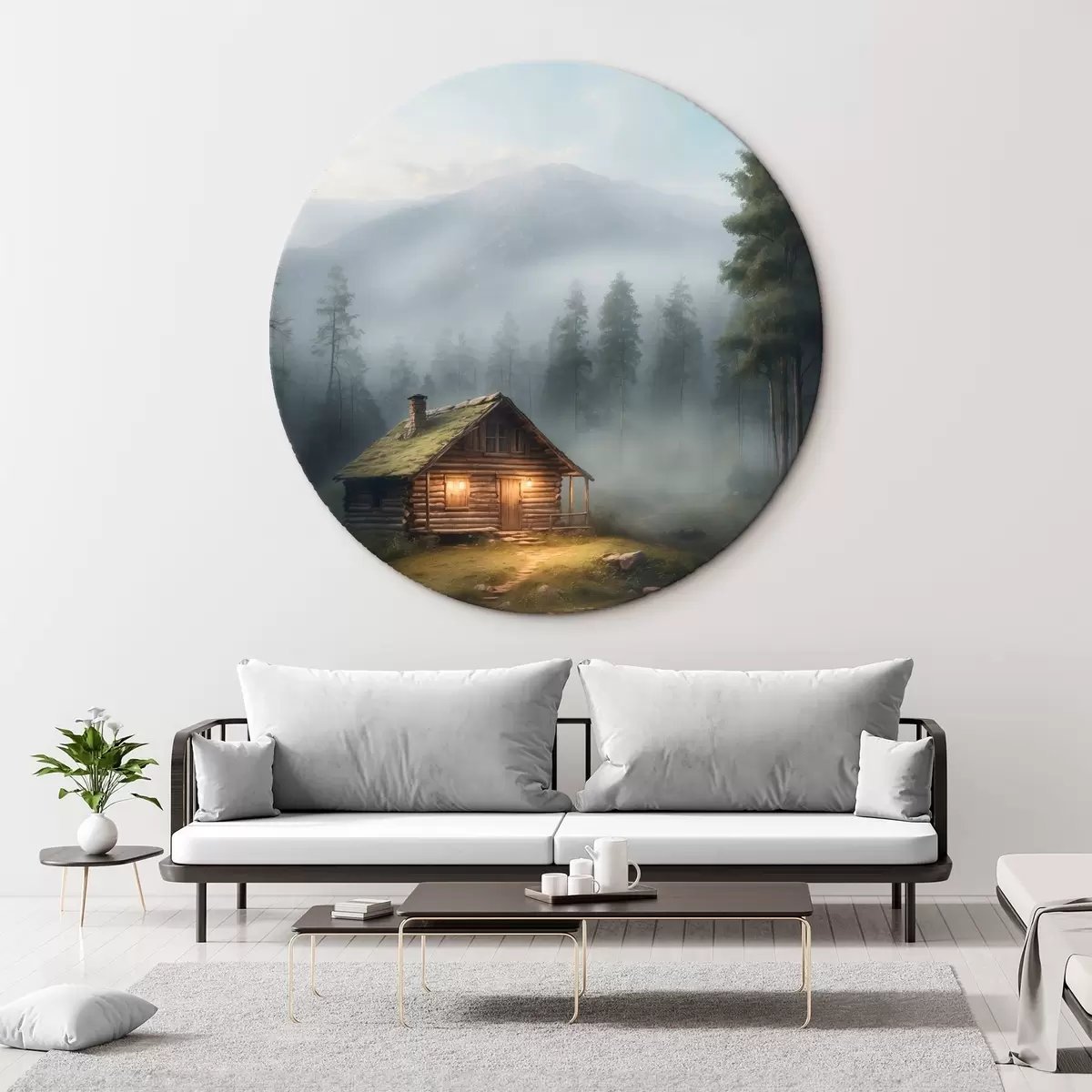 Picturi rotunde Cabană în pădurea cețoasă Nr r41304