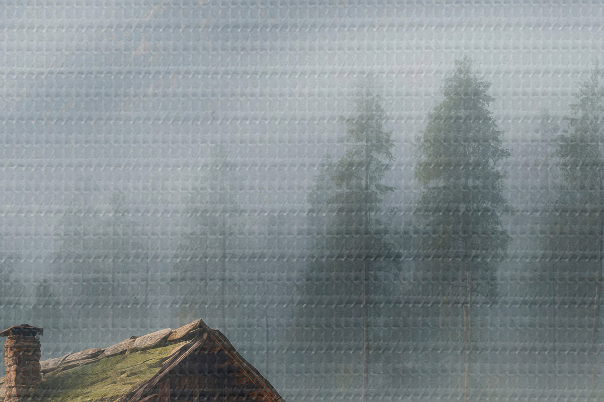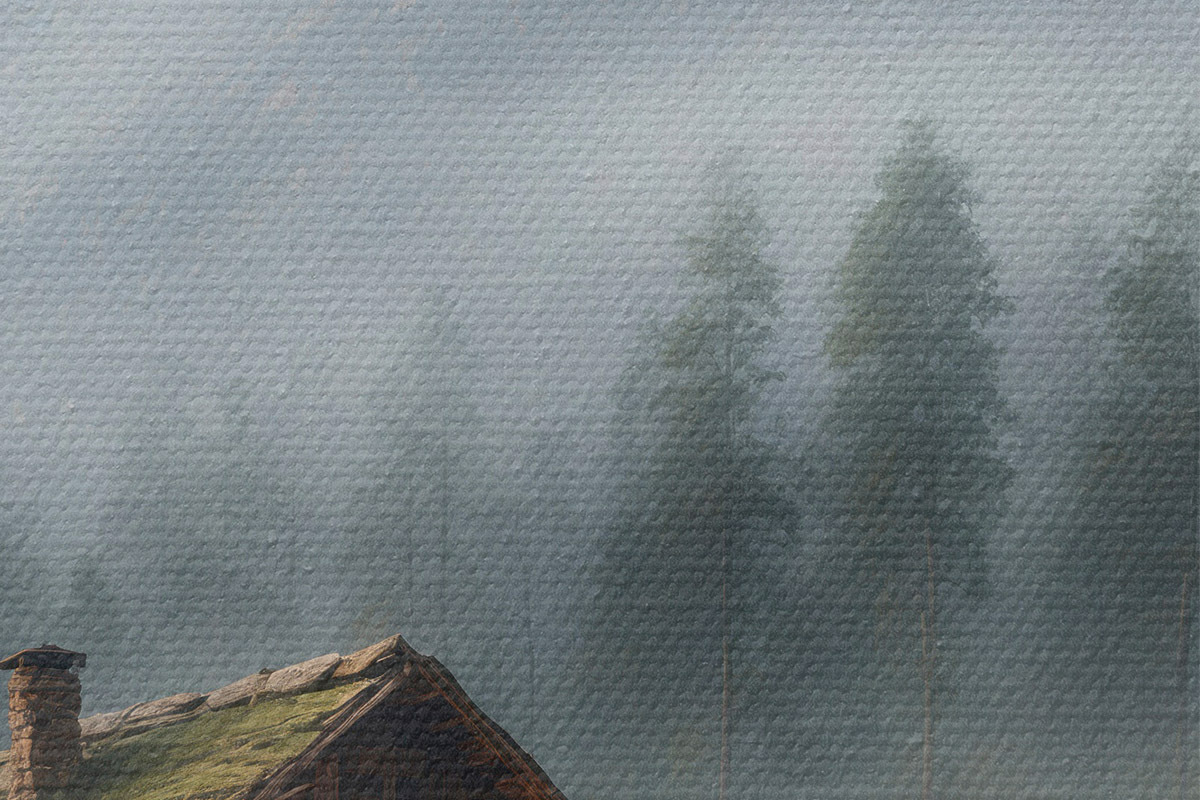 Picturi rotunde Cabană în pădurea cețoasă r41304