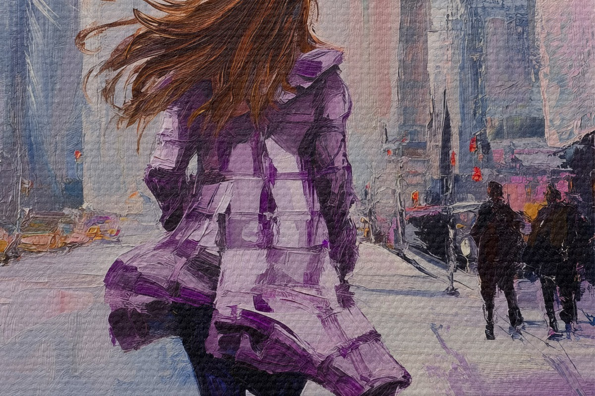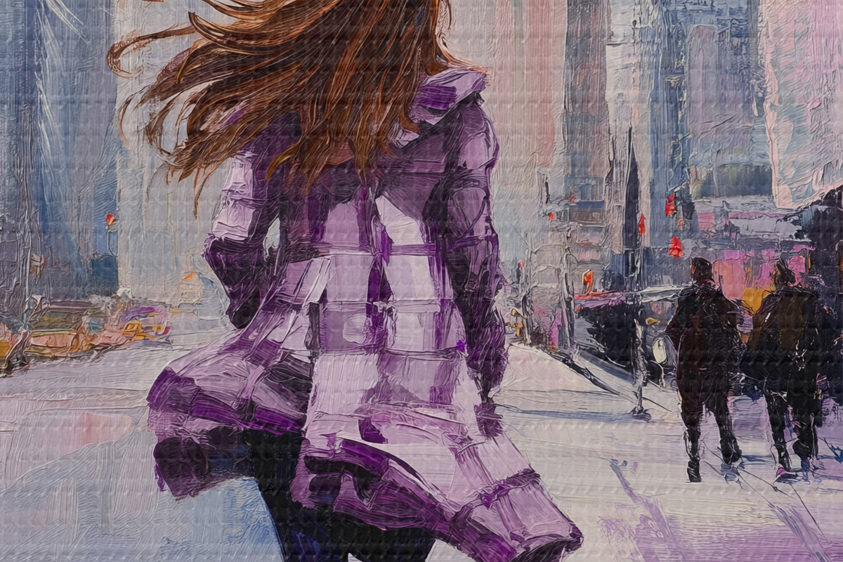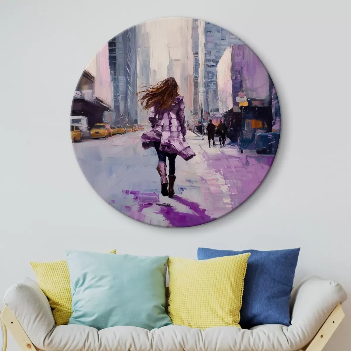 Picturi rotunde Fată în haină mov Nr r41345
