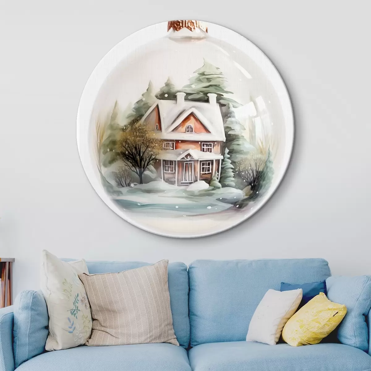Picturi rotunde Glob de cristal cu casa de acuarelă și copaci în zăpadă Nr r41365
