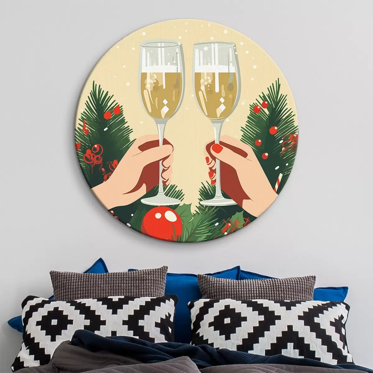 Picturi rotunde Pahare cu șampanie, sărbătoare, Anul Nou, abstracție, pop art Nr r41367