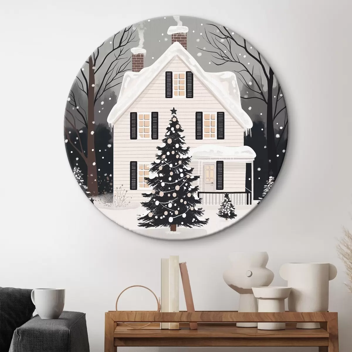 Picturi rotunde Oraș de iarnă, brad decorat, Crăciun, pădure, casă frumoasă r41371