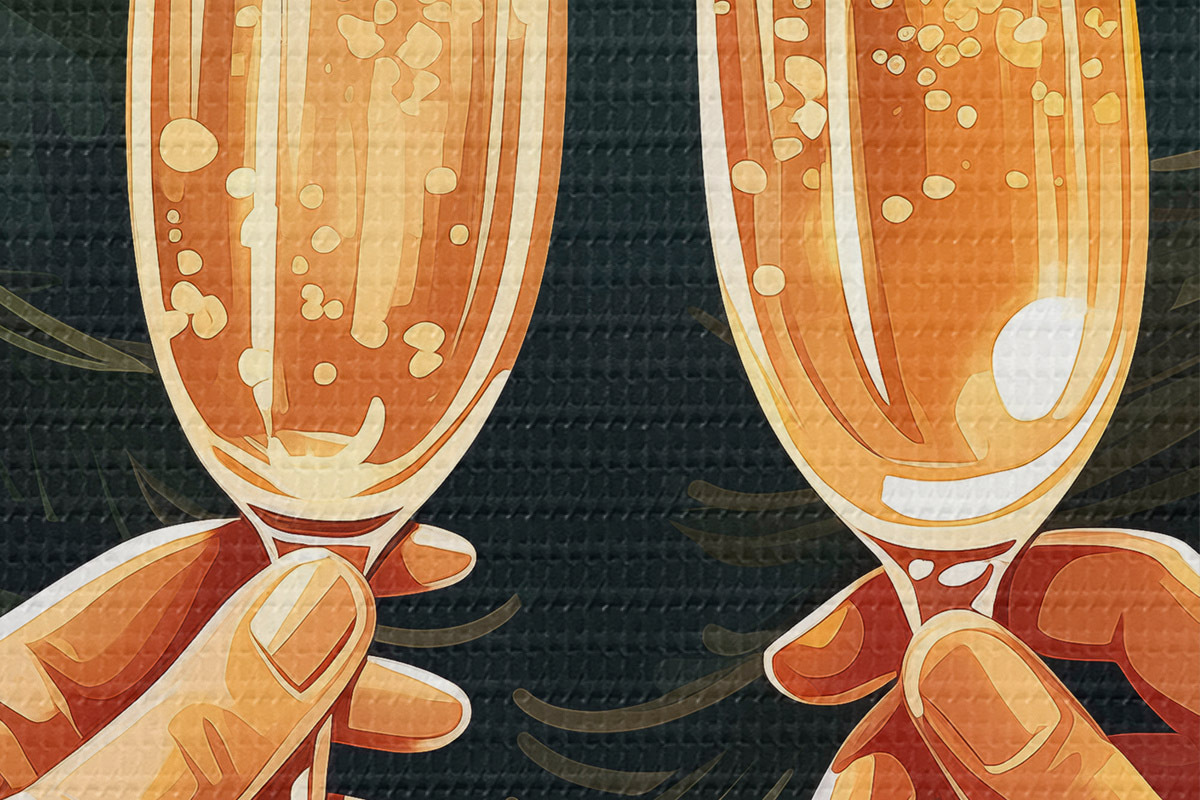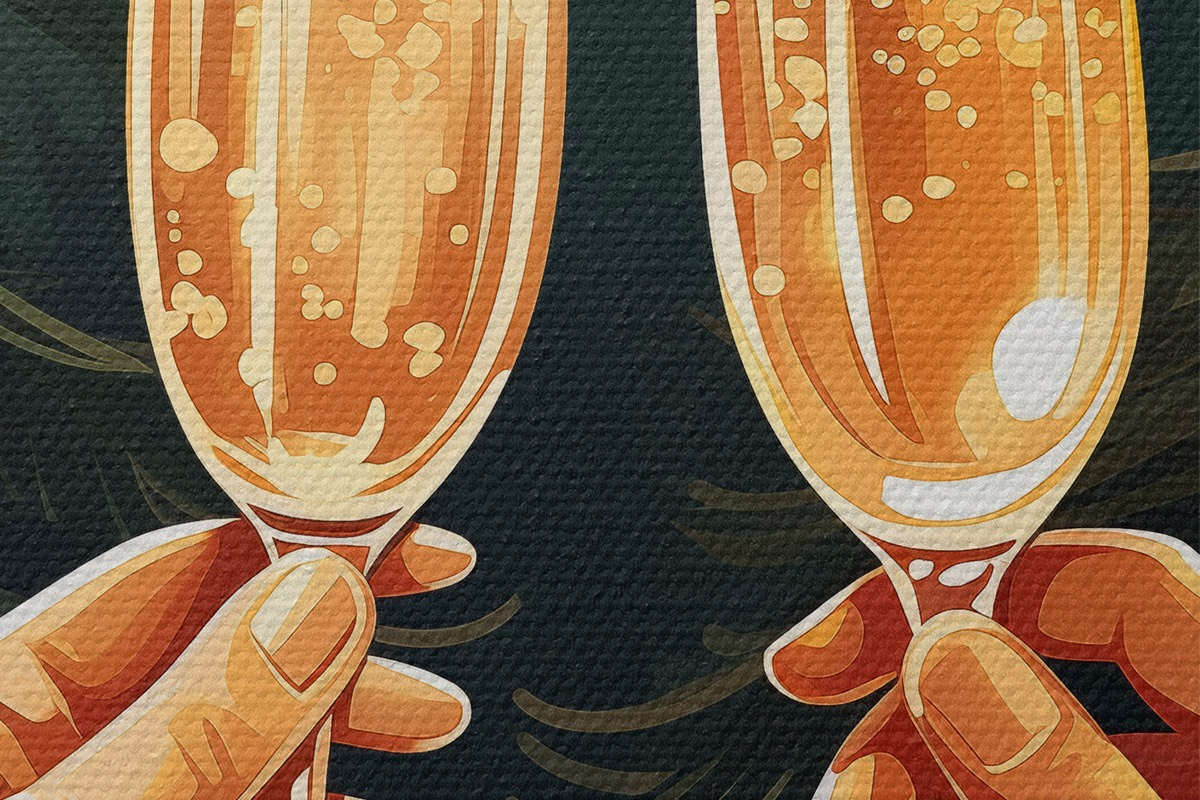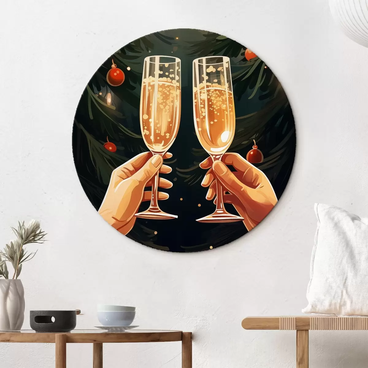 Picturi rotunde Sărbătoare, pahare de șampanie, Crăciun, brad, lumânări, lumini de Crăciun Nr r41373