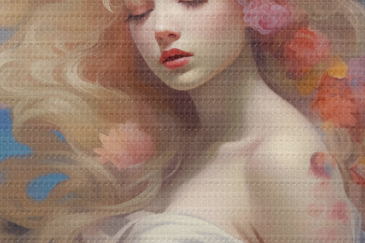 Țesătura fină a firelor de pe această pânză seamănă cu suprafața pânzelor artiștilor profesioniști.