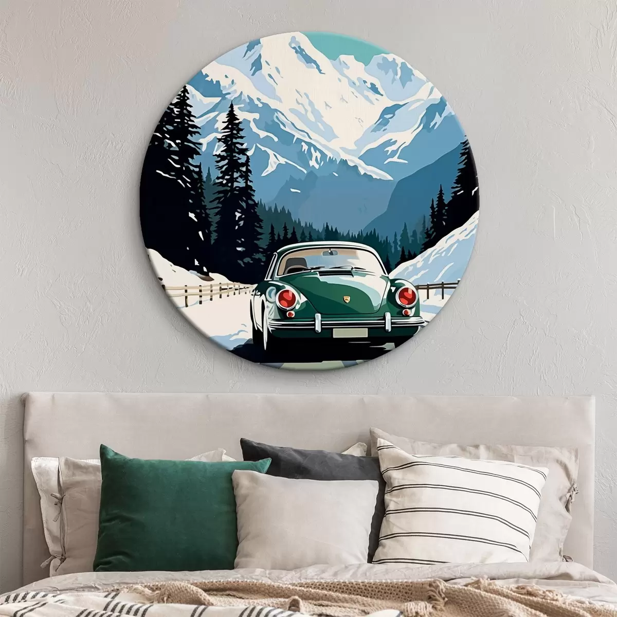 Picturi rotunde Retro masina pe un drum de munte de iarnă Nr r41478