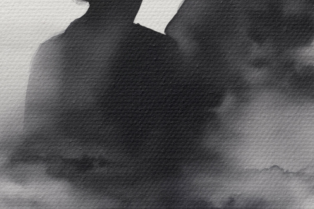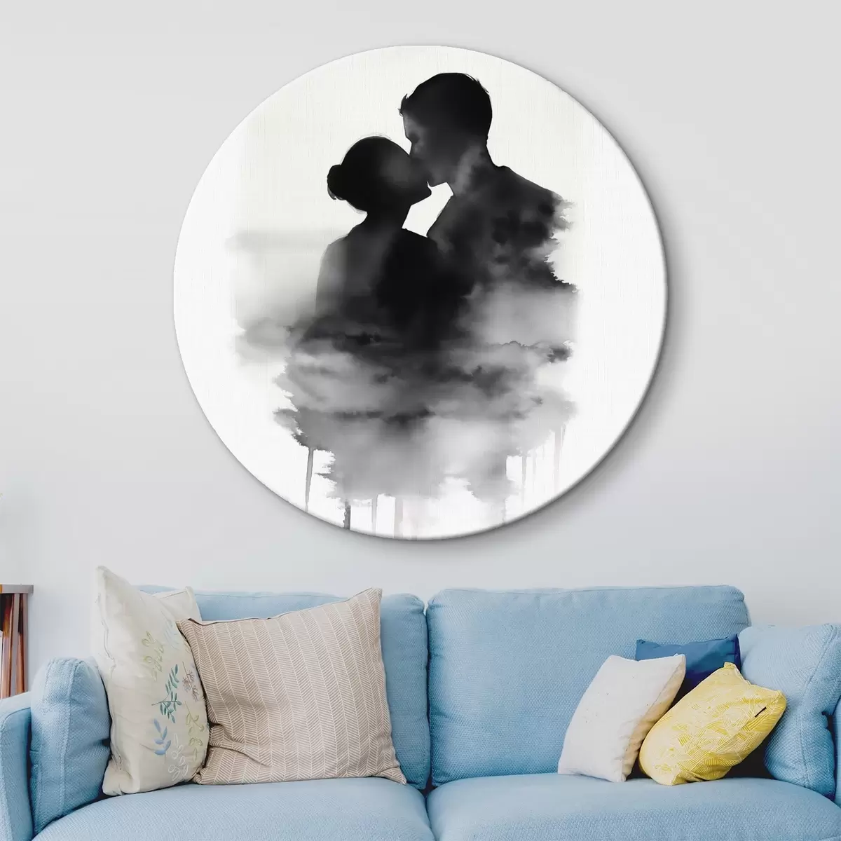 Picturi rotunde Silueta unui cuplu în tehnica acuarelă alb-negru Nr r41496