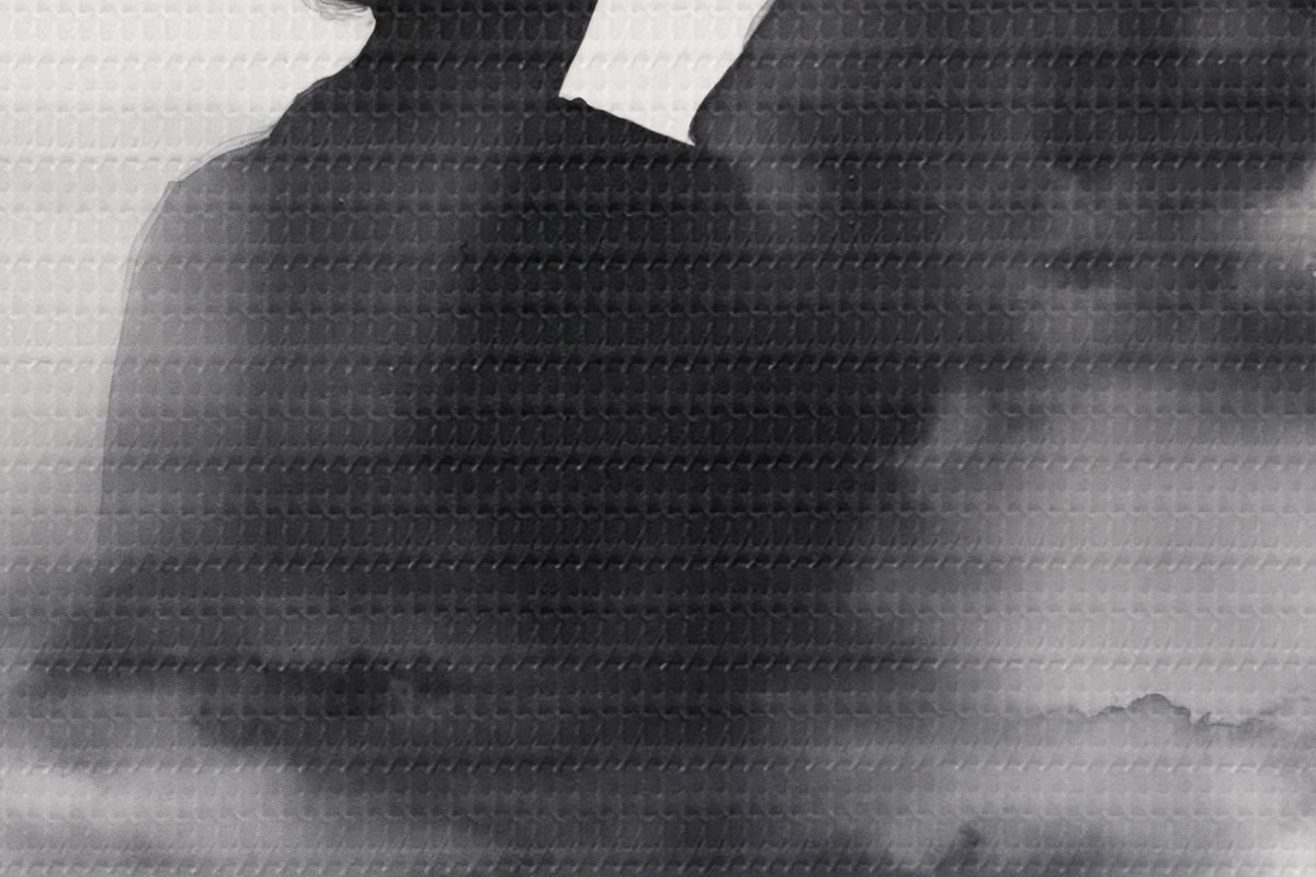 Picturi rotunde Silueta unui cuplu în tehnica acuarelă alb-negru r41496