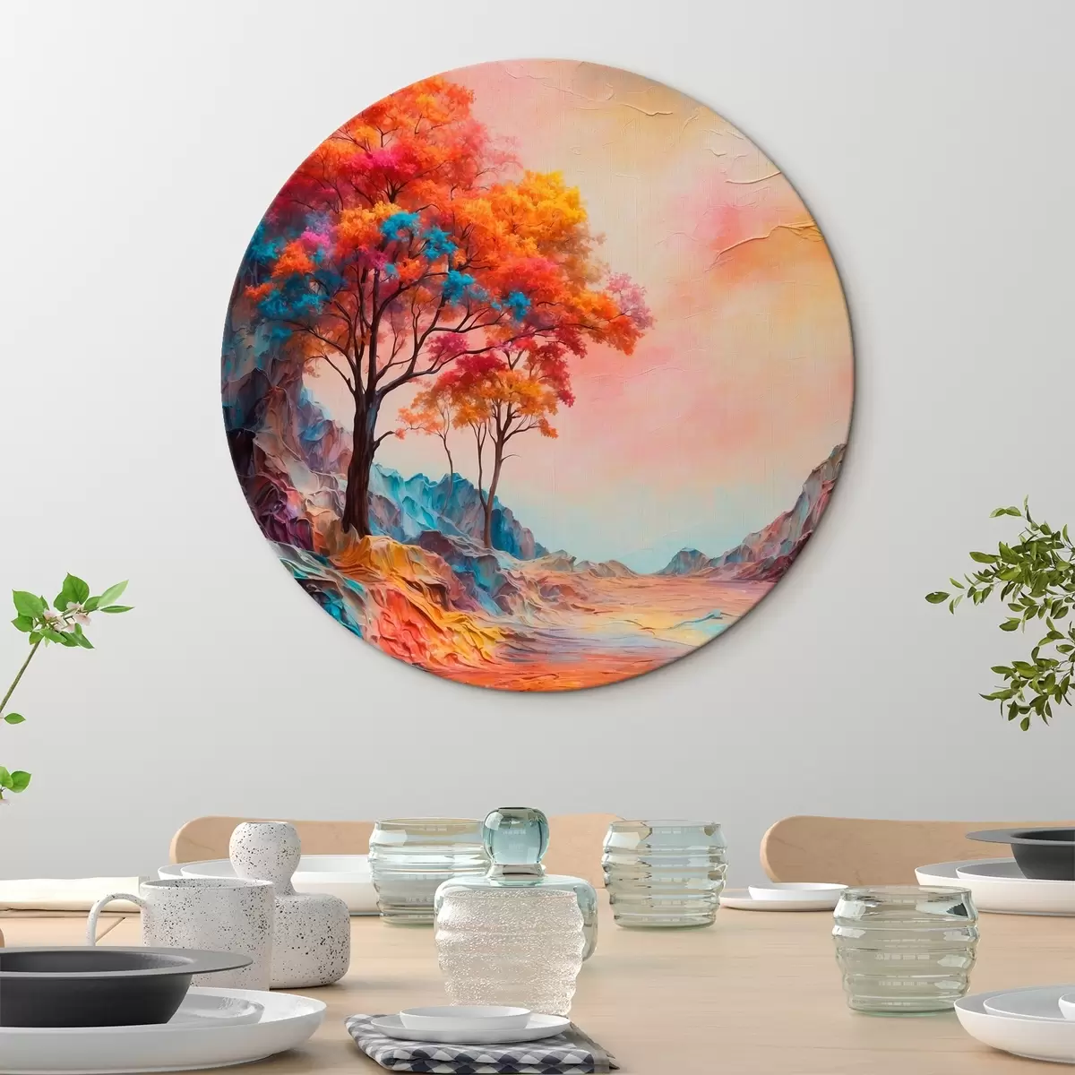 Picturi rotunde Copaci și munți abstracți multicolori Nr r41772