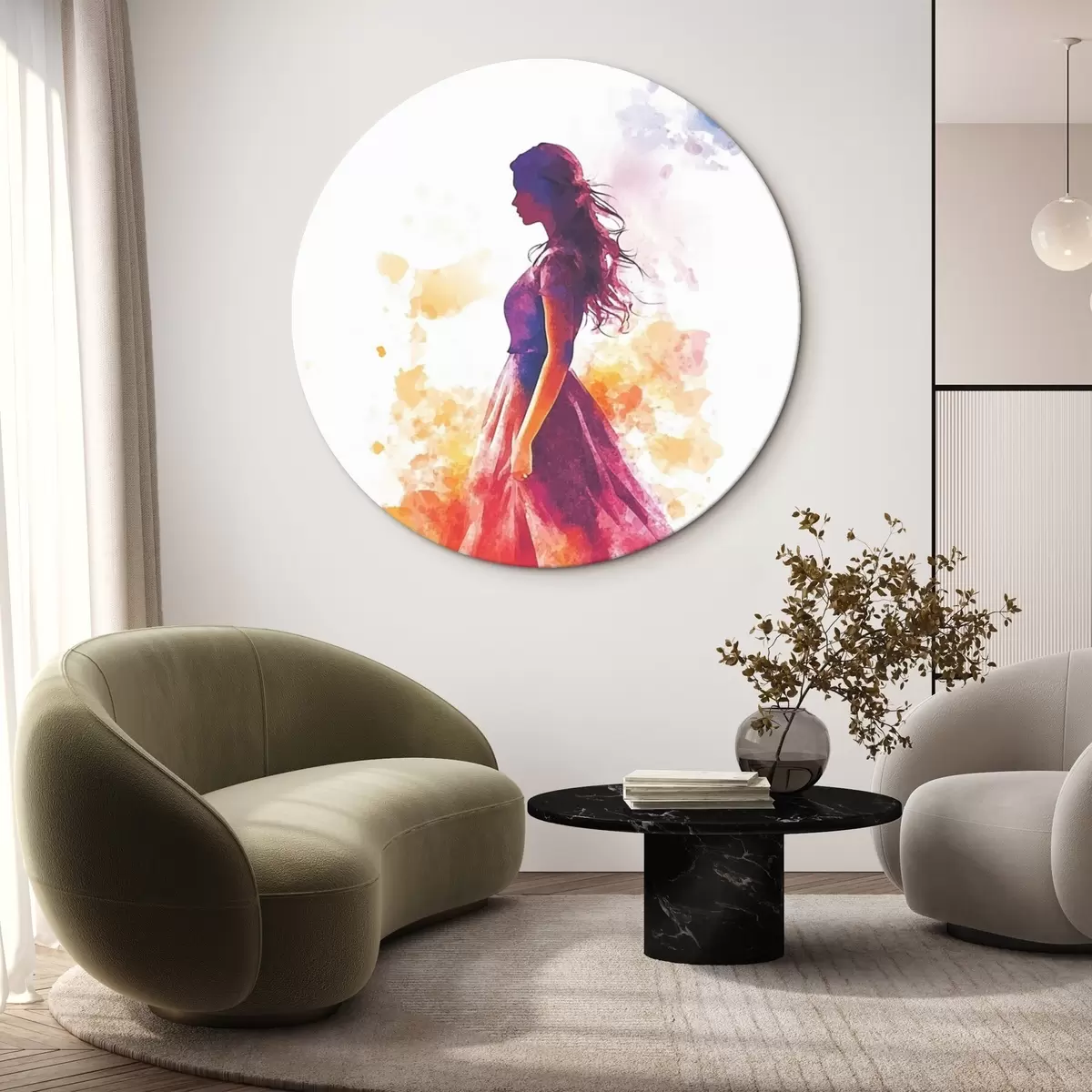 Picturi rotunde Portret de fată în stil acuarelă Nr r42080