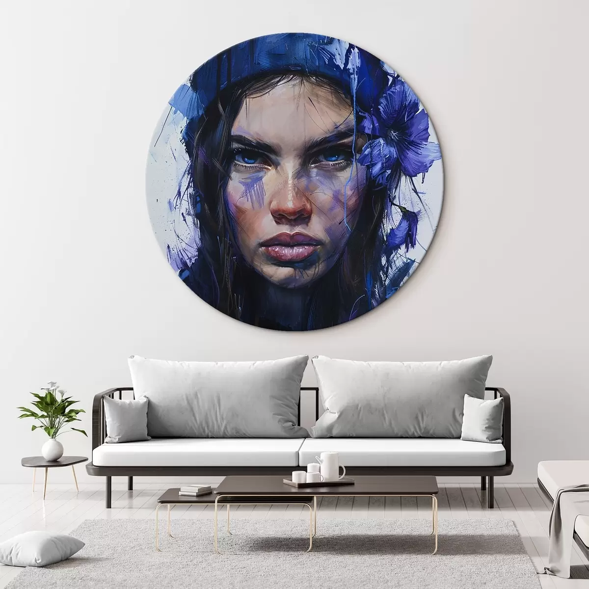Picturi rotunde Portret de fată în stil acuarelă Nr r42086