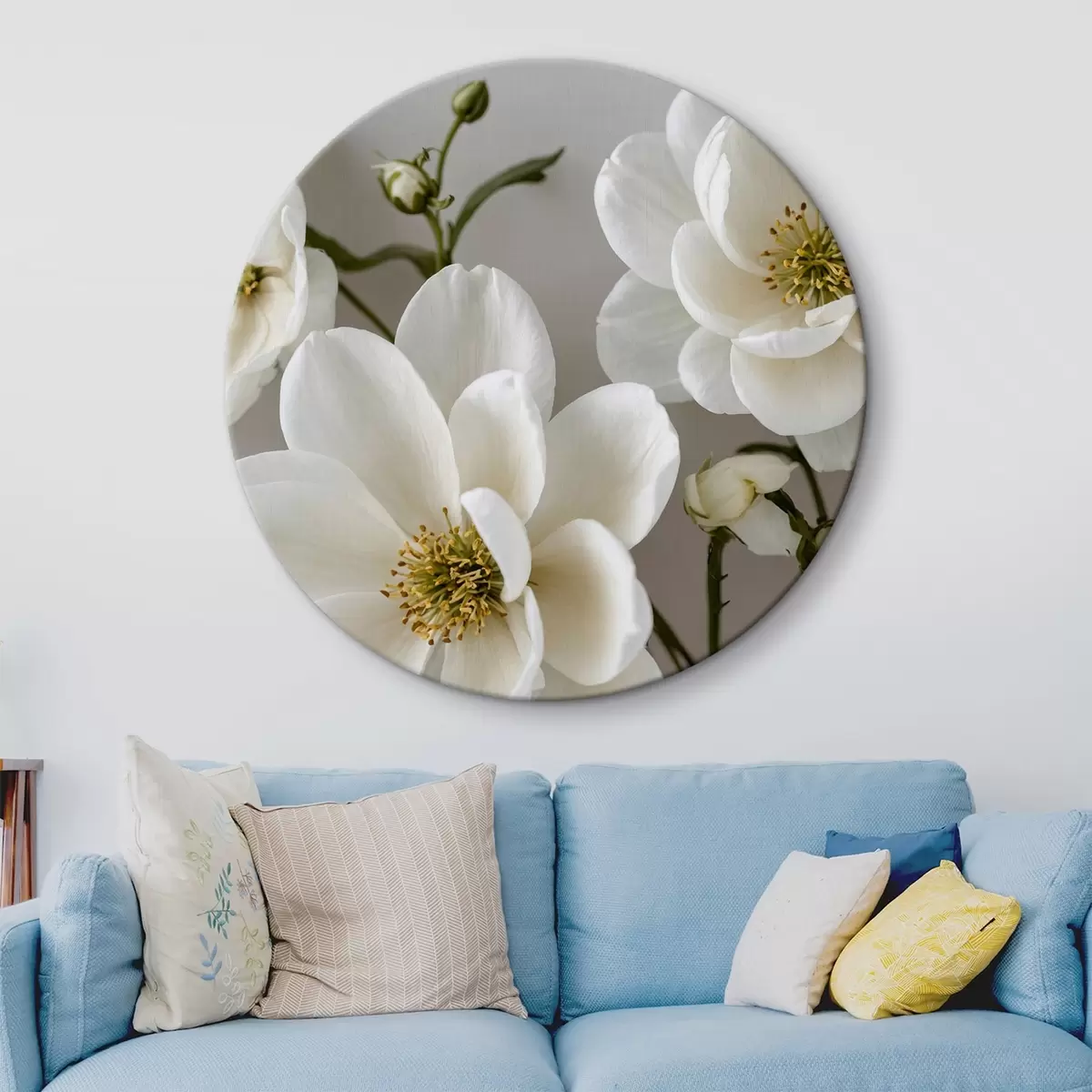 Picturi rotunde Flori albe și tulpini pe fundal deschis r42097