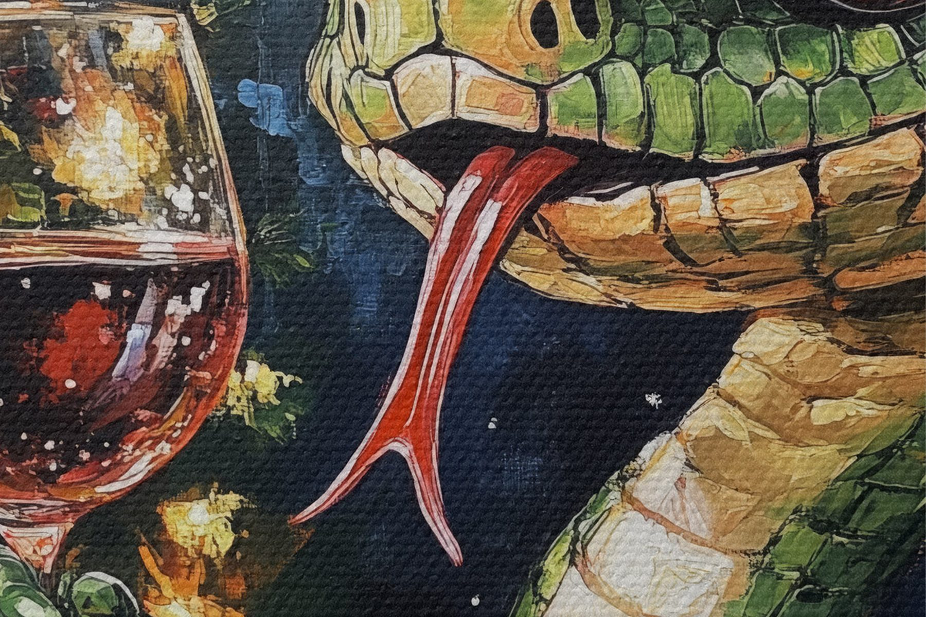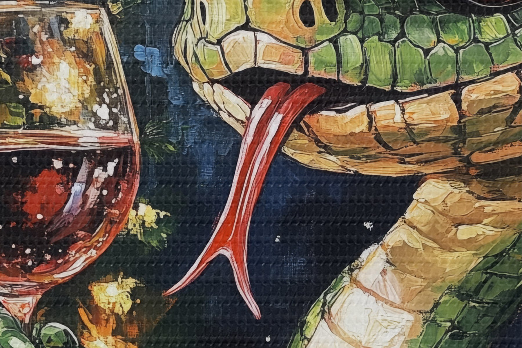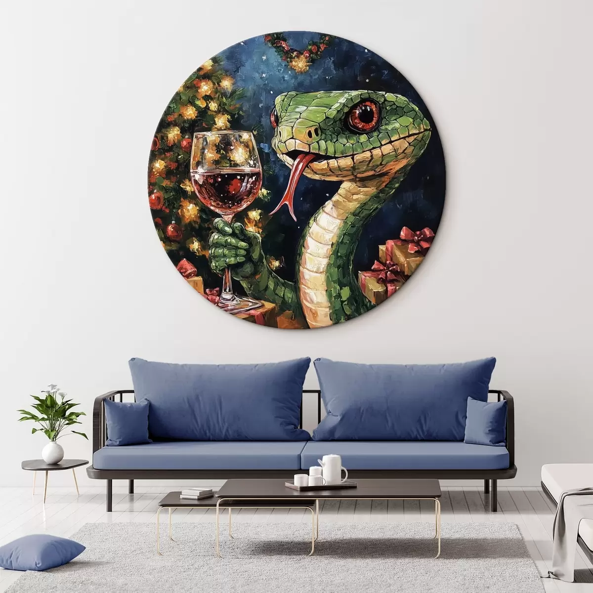 Picturi rotunde Un șarpe cu un pahar de vin sărbătorește noul an Nr r42106