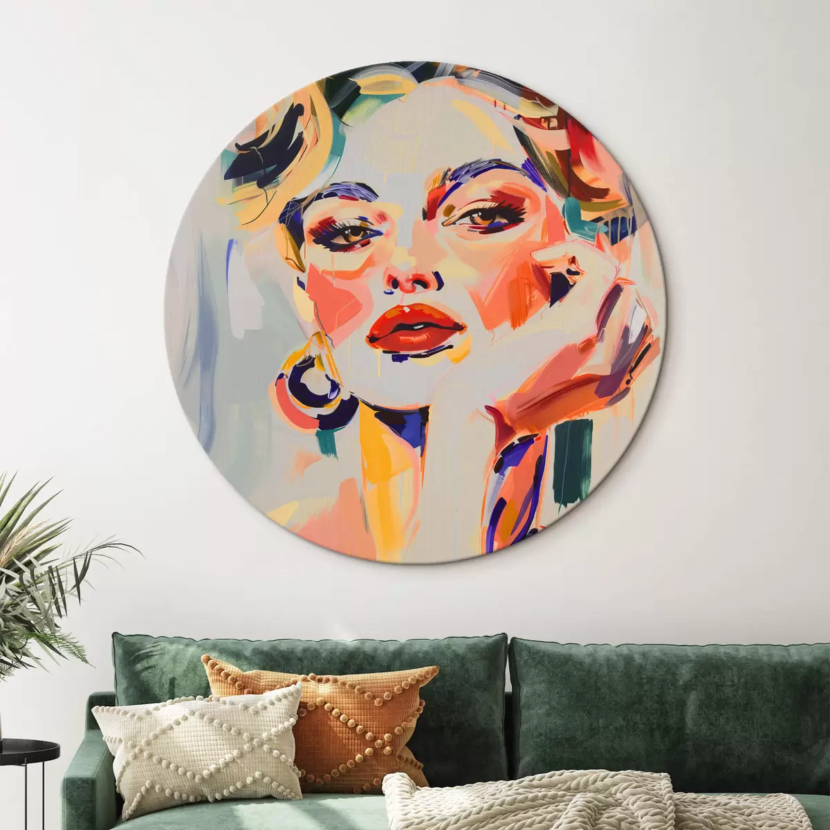 Picturi rotunde Portret de femeie în tușe multicolore Nr r42111