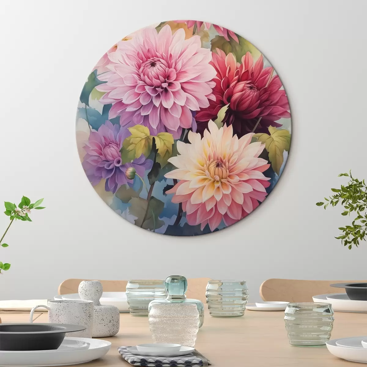 Picturi rotunde Crizanteme luminoase imitație de acuarelă stil Nr r42116