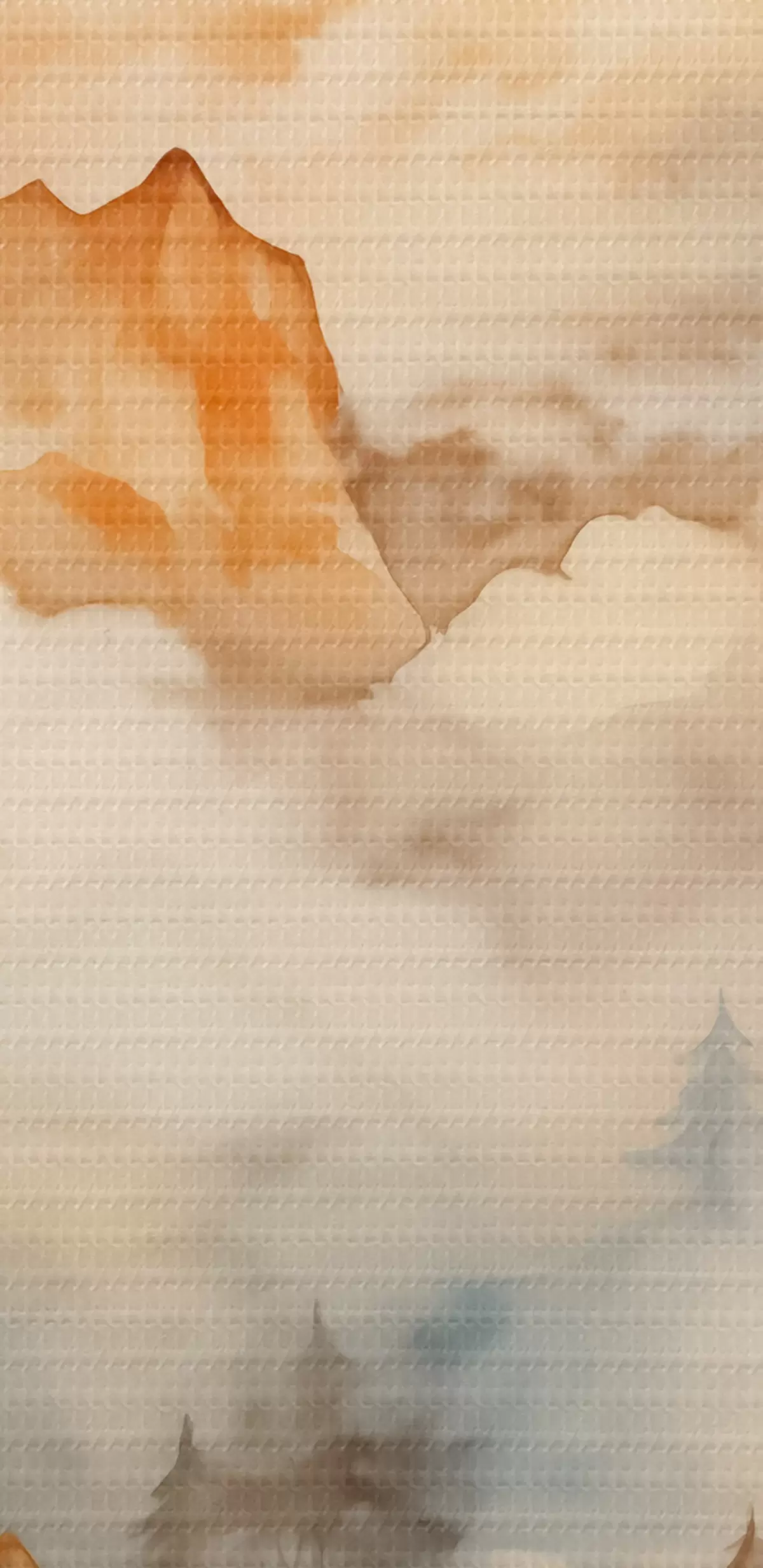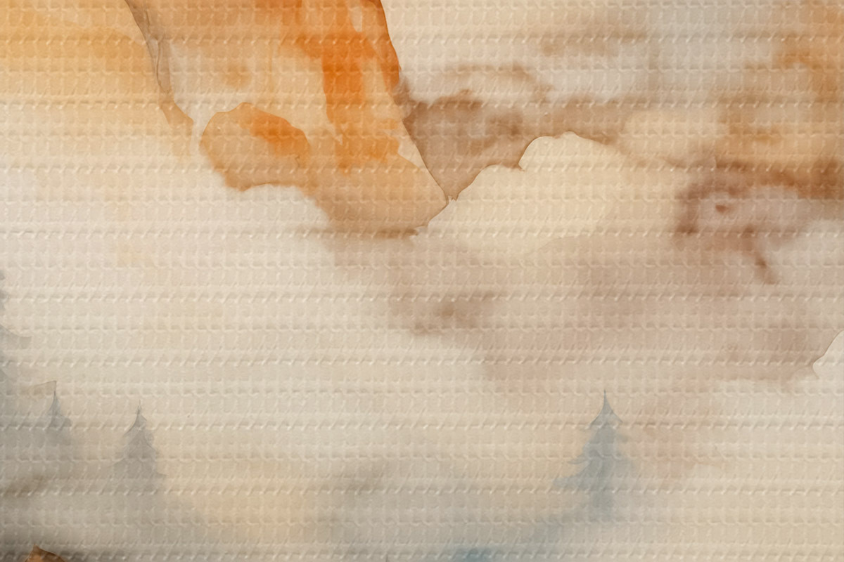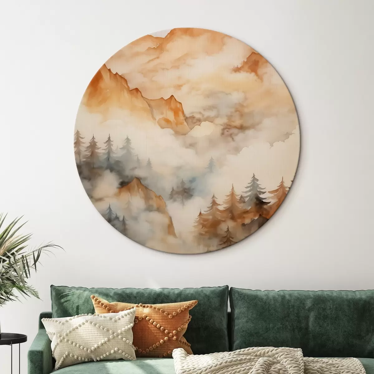 Picturi rotunde Pădure și munți imitație de acuarelă, nuanțe portocalii Nr r42119