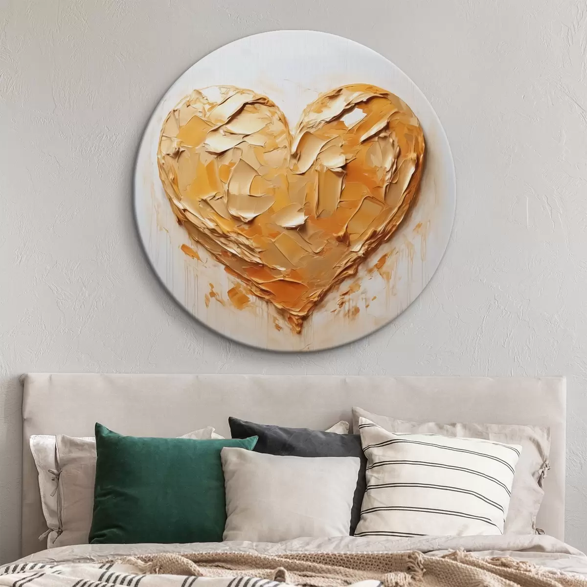 Picturi rotunde Imitarea în inimă a loviturilor de vopsea, nuanțe de galben și portocaliu Nr r42124