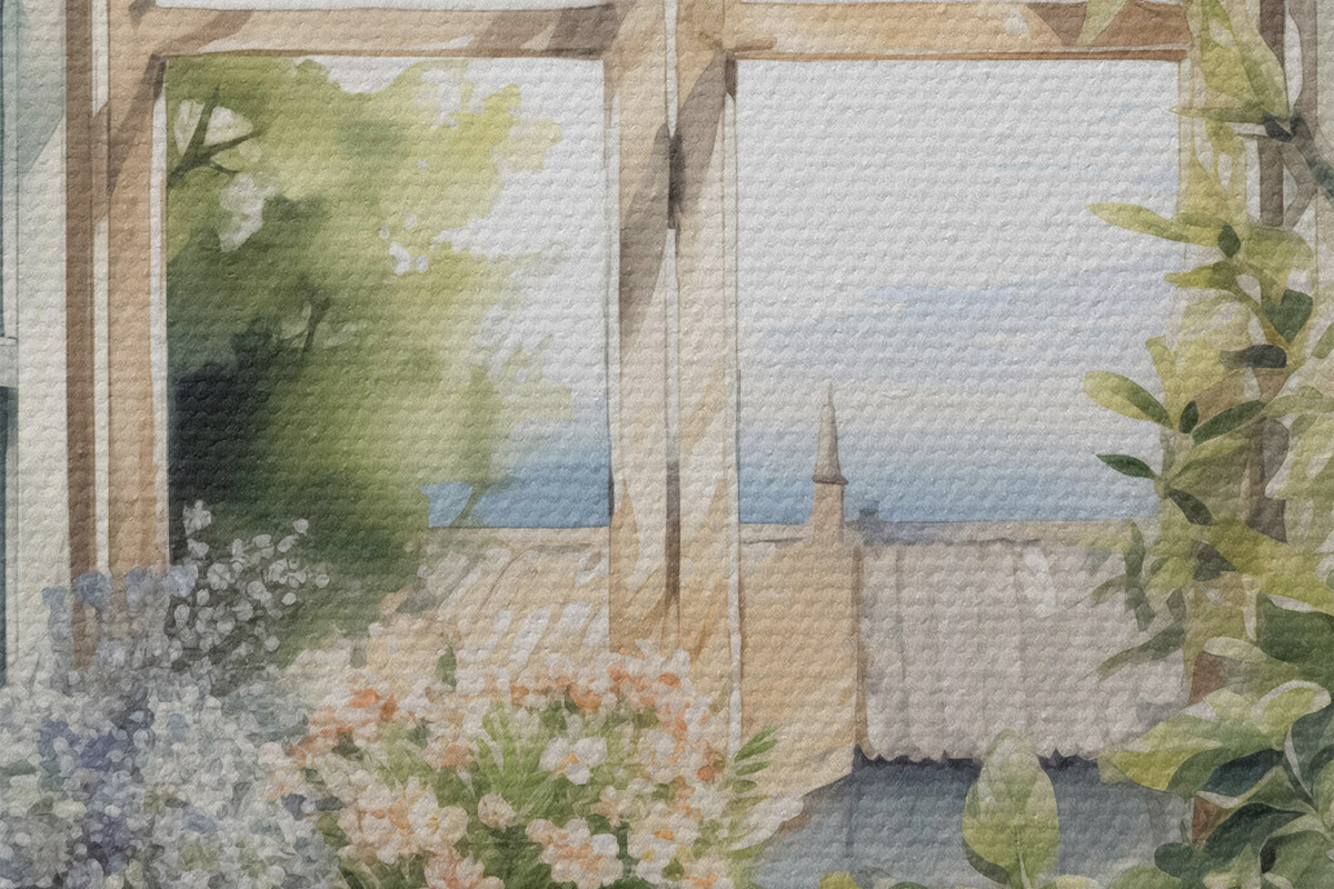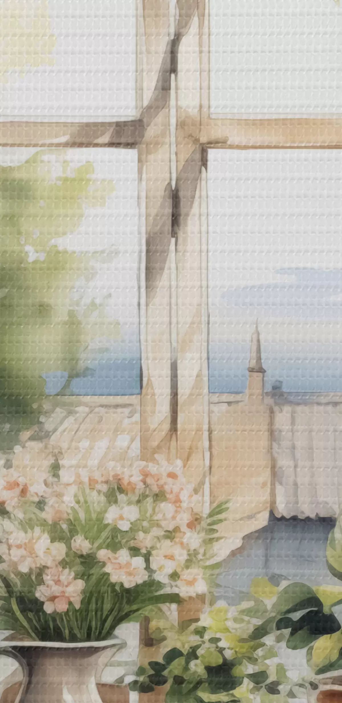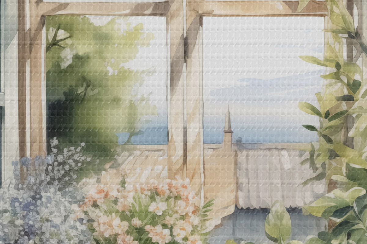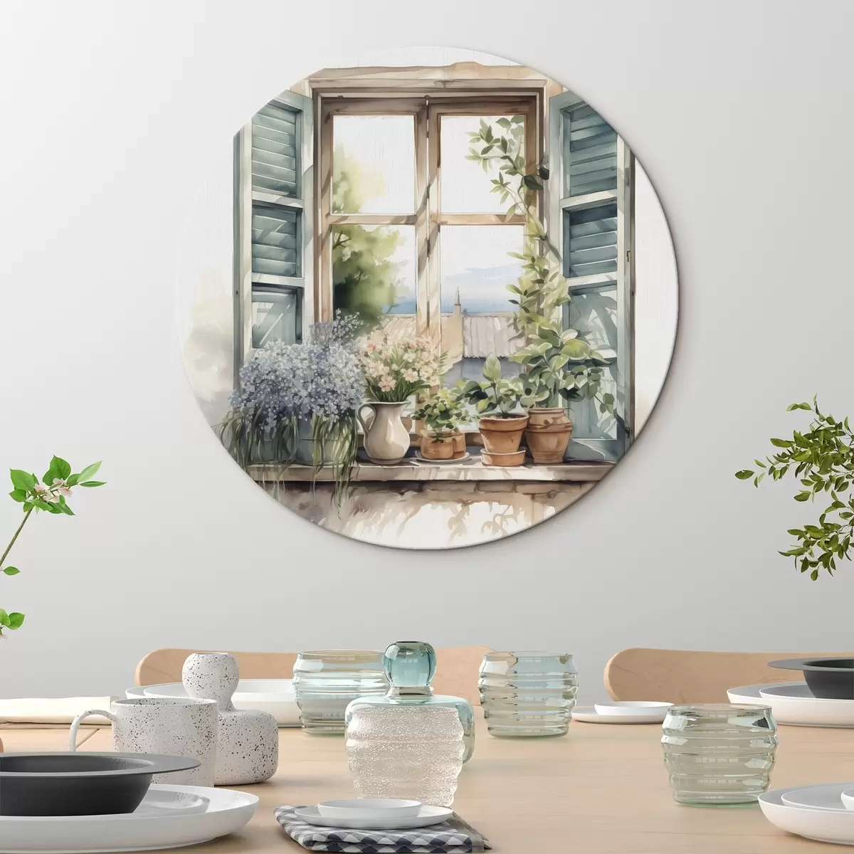 Picturi rotunde Vegetație pe pervazul ferestrei imitație de acuarelă Nr r42144