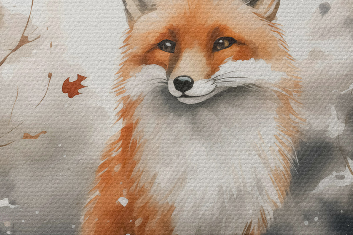 Picturi rotunde Fox pui într-o pădure de zăpadă imitație de acuarelă Nr r42146