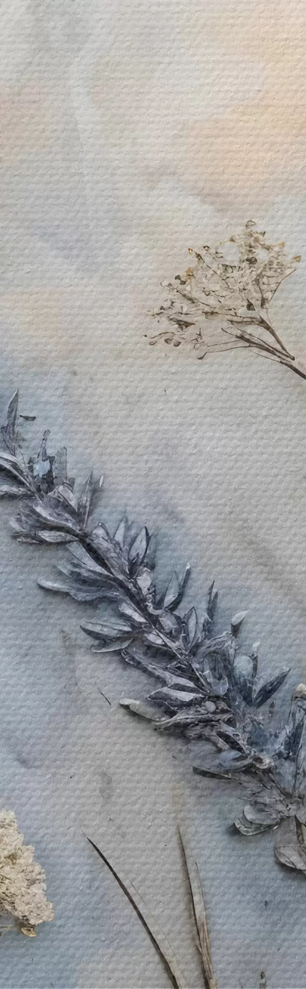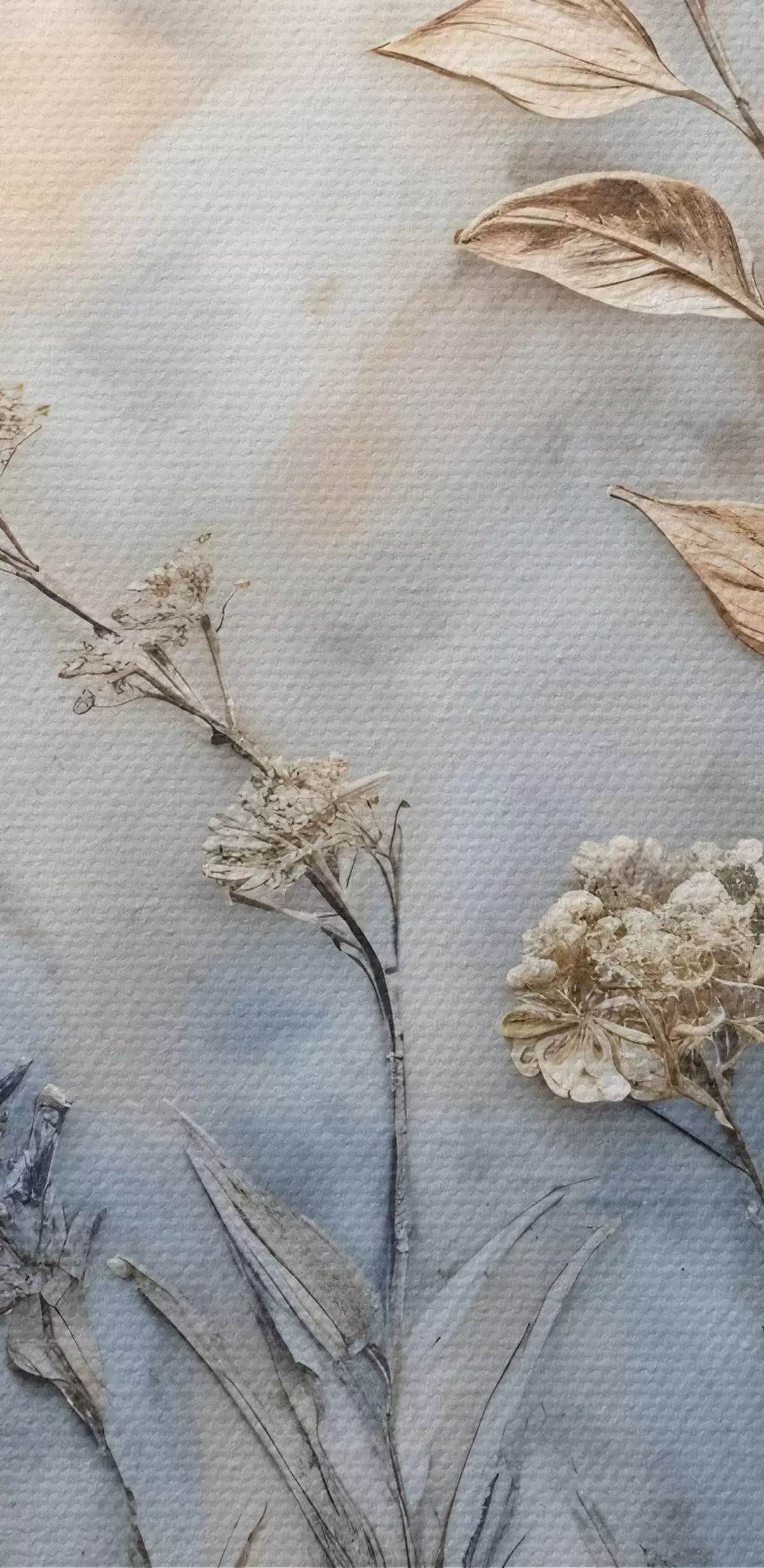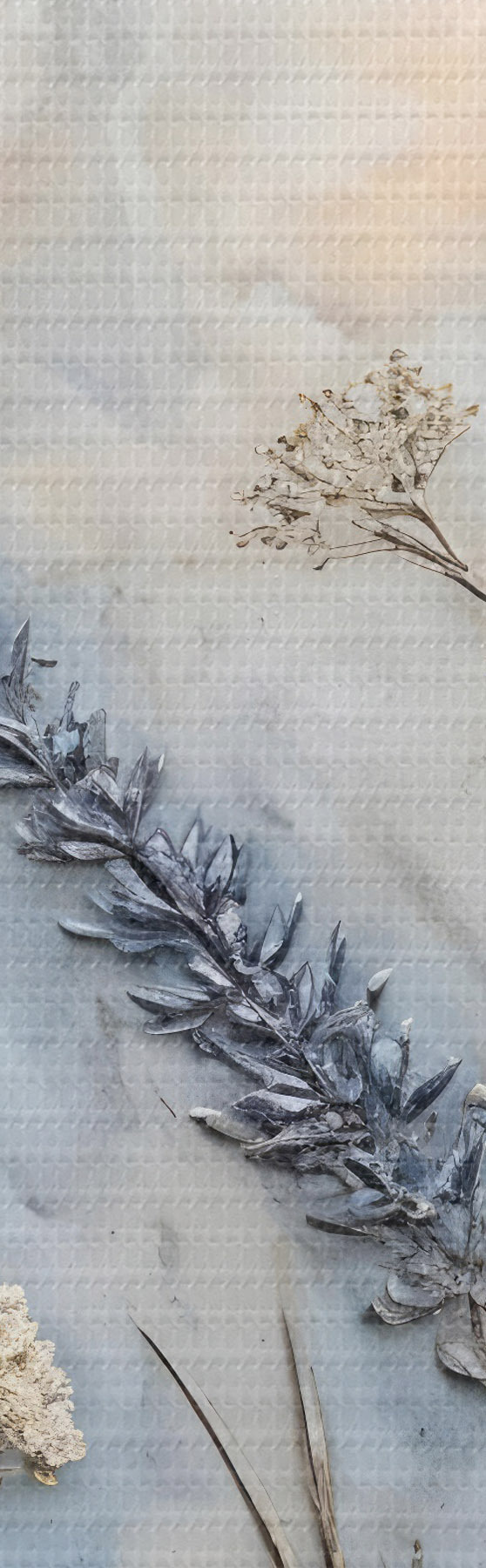 Picturi rotunde Un câmp de diverse flori sălbatice și plante în nuanțe de albastru, alb și bej pe un fundal moale, cețos Nr r42214