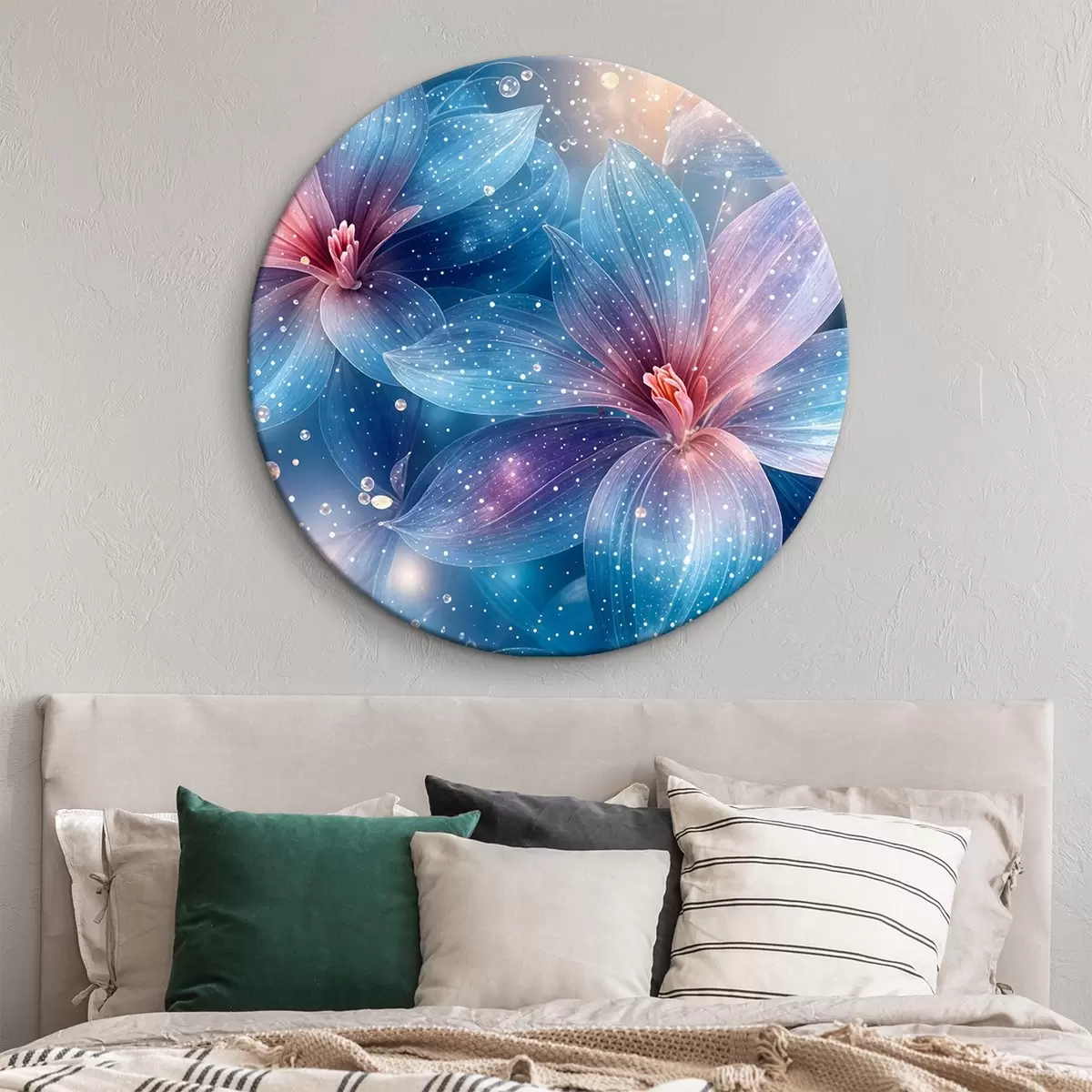 Picturi rotunde Flori vibrante și eterice cu petale pastelate moi pe un fundal de vis, înstelat r42231