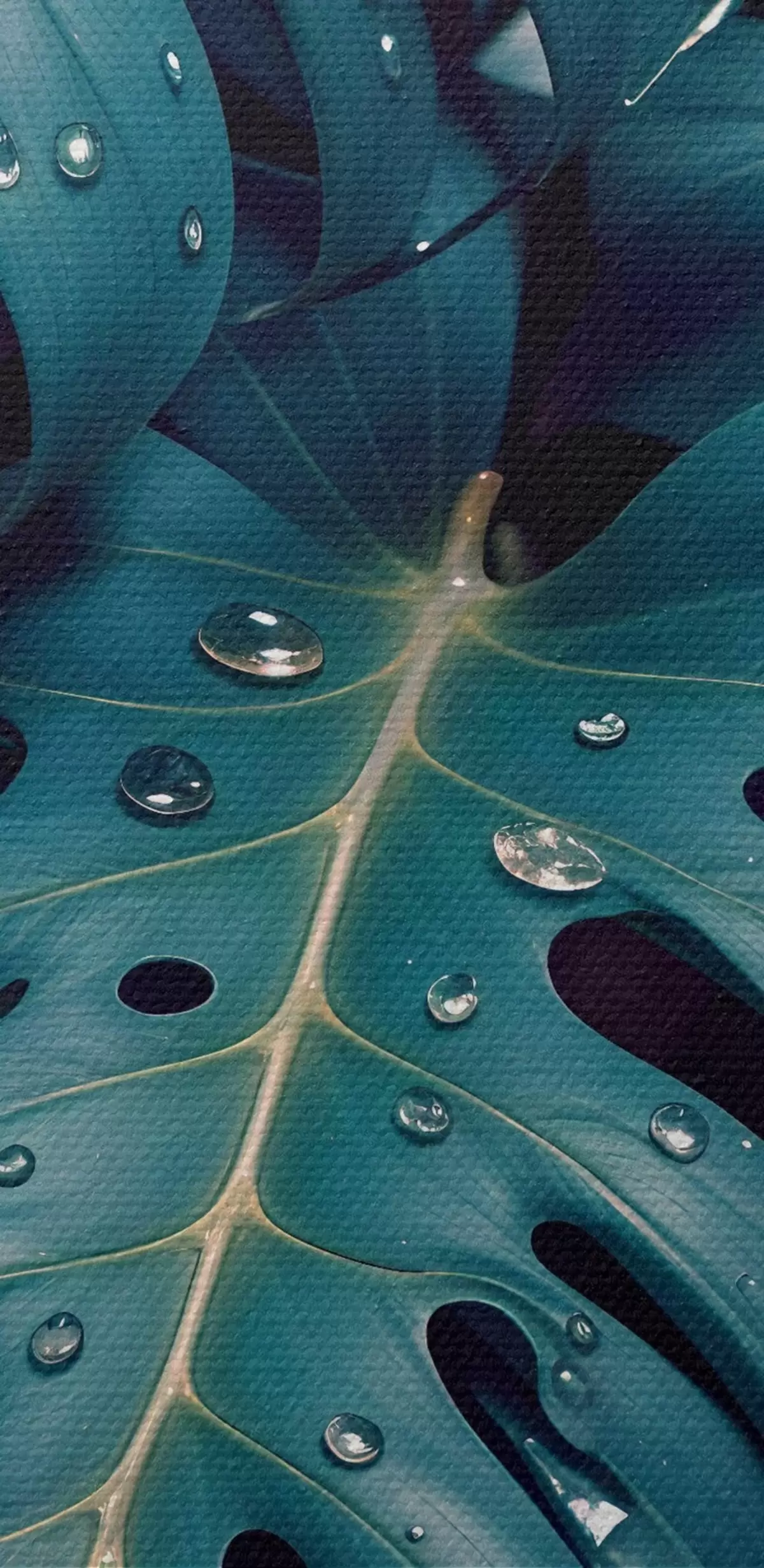 Picturi rotunde Frunze luxuriante de monstera tropicală cu picături de apă pe un fundal întunecat, creând o imprimare atmosferică și mohorâtă r42233