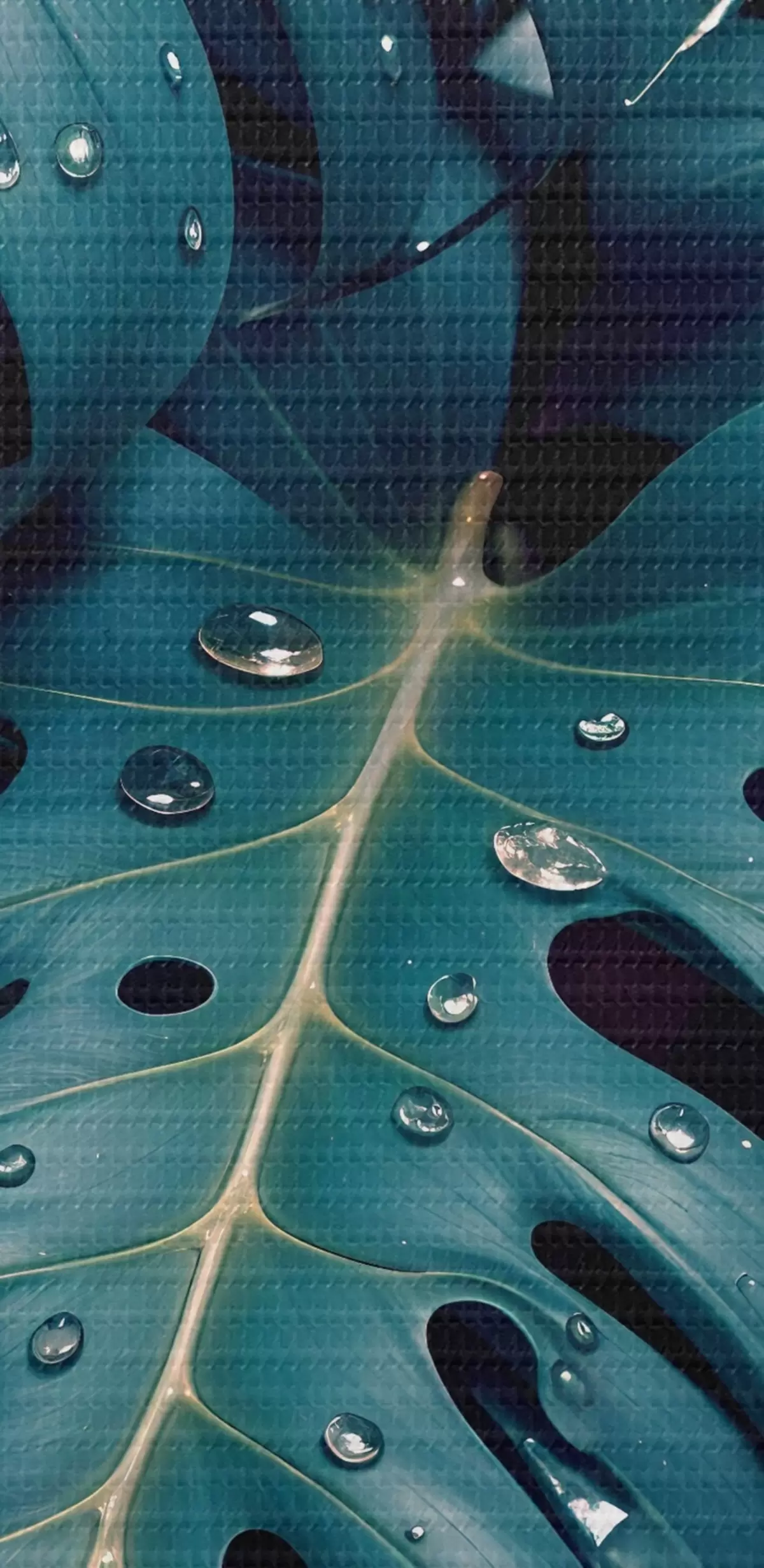 Picturi rotunde Frunze luxuriante de monstera tropicală cu picături de apă pe un fundal întunecat, creând o imprimare atmosferică și mohorâtă Nr r42233