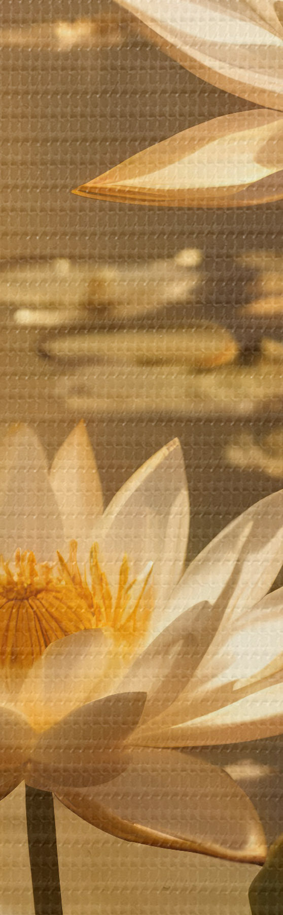 Picturi rotunde Flori albe de lotus plutind pe un iaz calm cu soarele, creând o atmosferă senină și liniștită Nr r42239