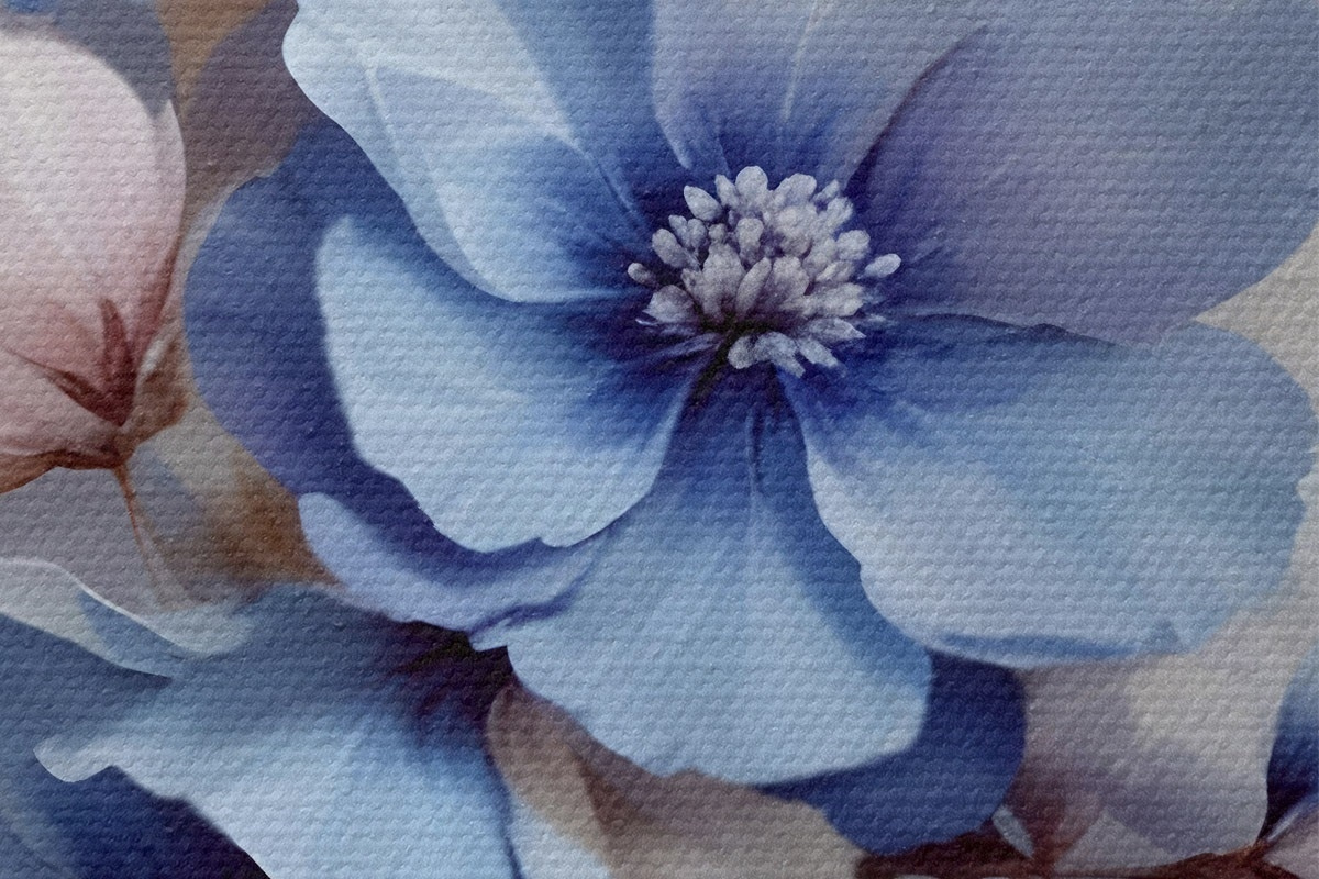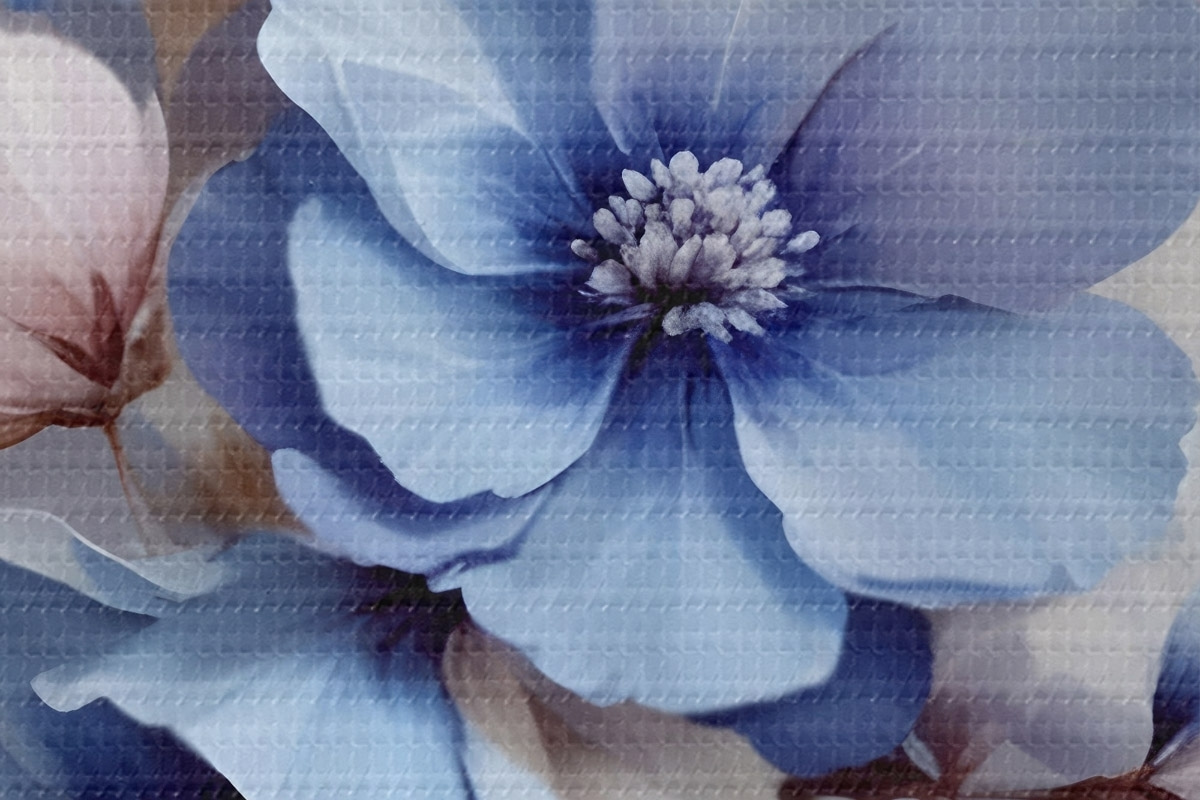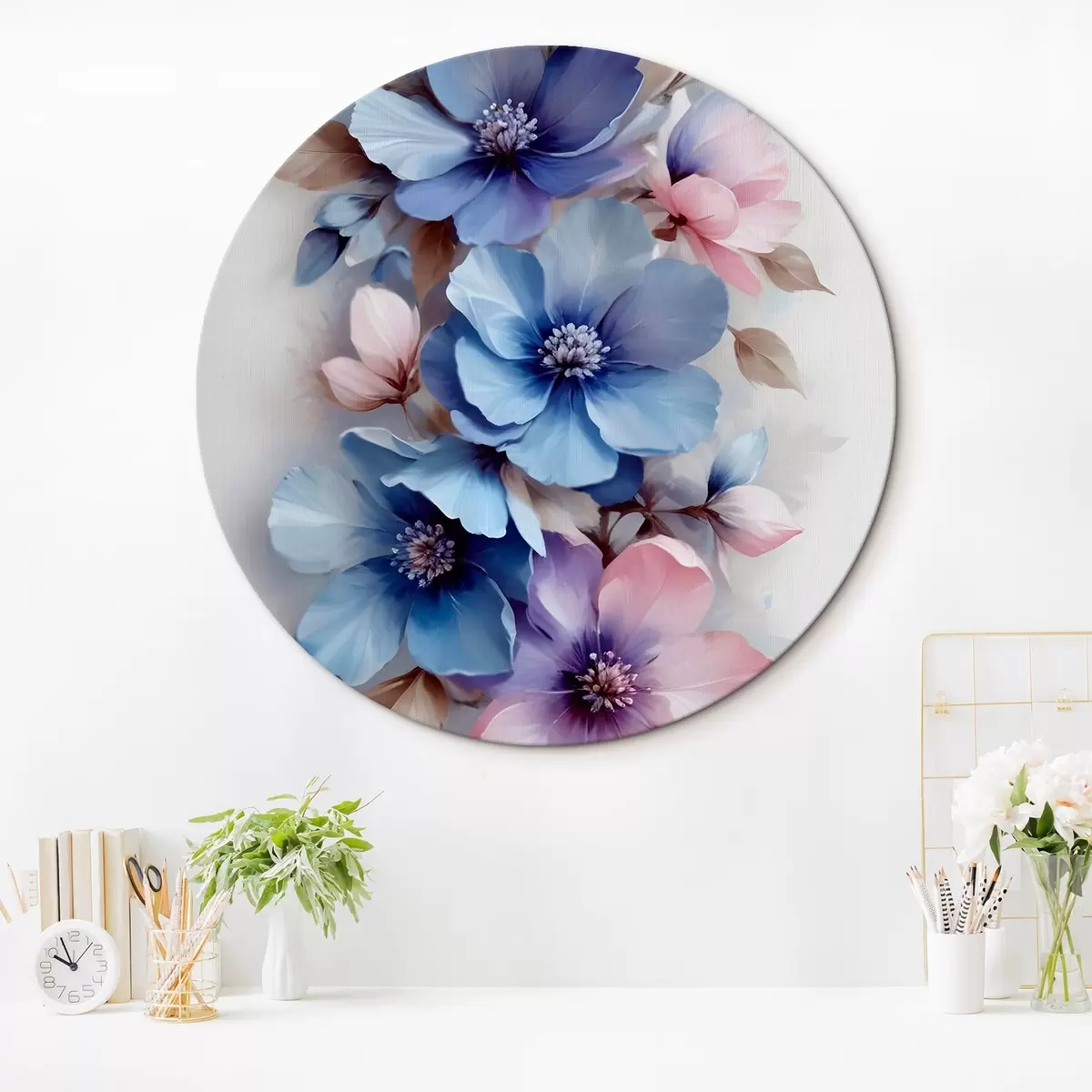 Picturi rotunde Flori delicate albastre și roz, cu petale și centre moi, aranjate într-o imprimare florală frumoasă pe un fundal deschis r42241