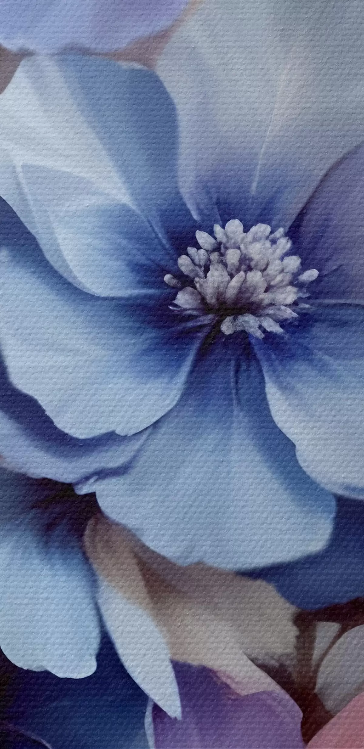 Picturi rotunde Flori delicate albastre și roz, cu petale și centre moi, aranjate într-o imprimare florală frumoasă pe un fundal deschis Nr r42241