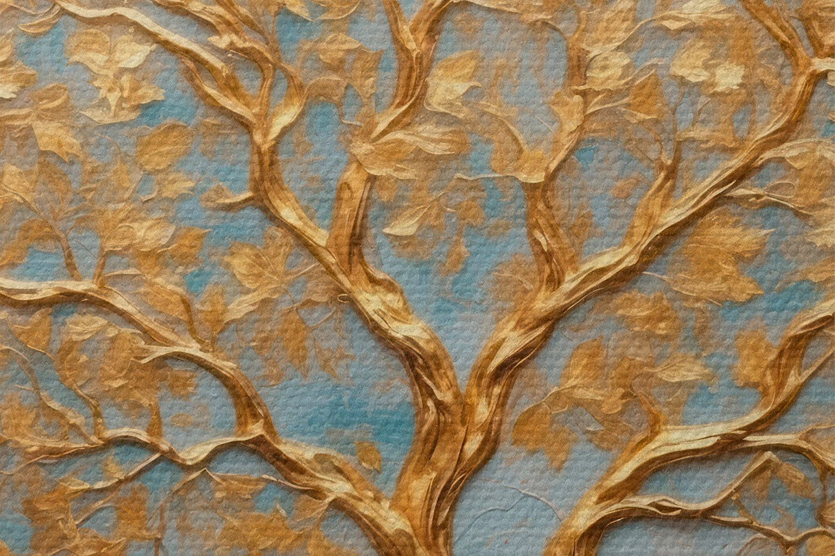 Picturi rotunde Copac galben pe fundal alb-albastru r42266