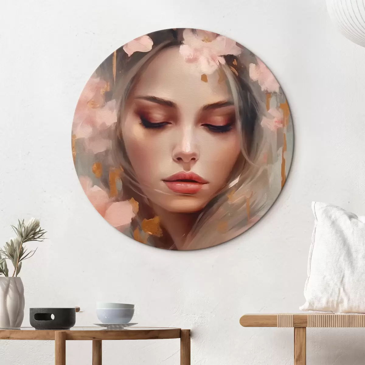 Picturi rotunde Fată frumoasă și flori Nr r42299