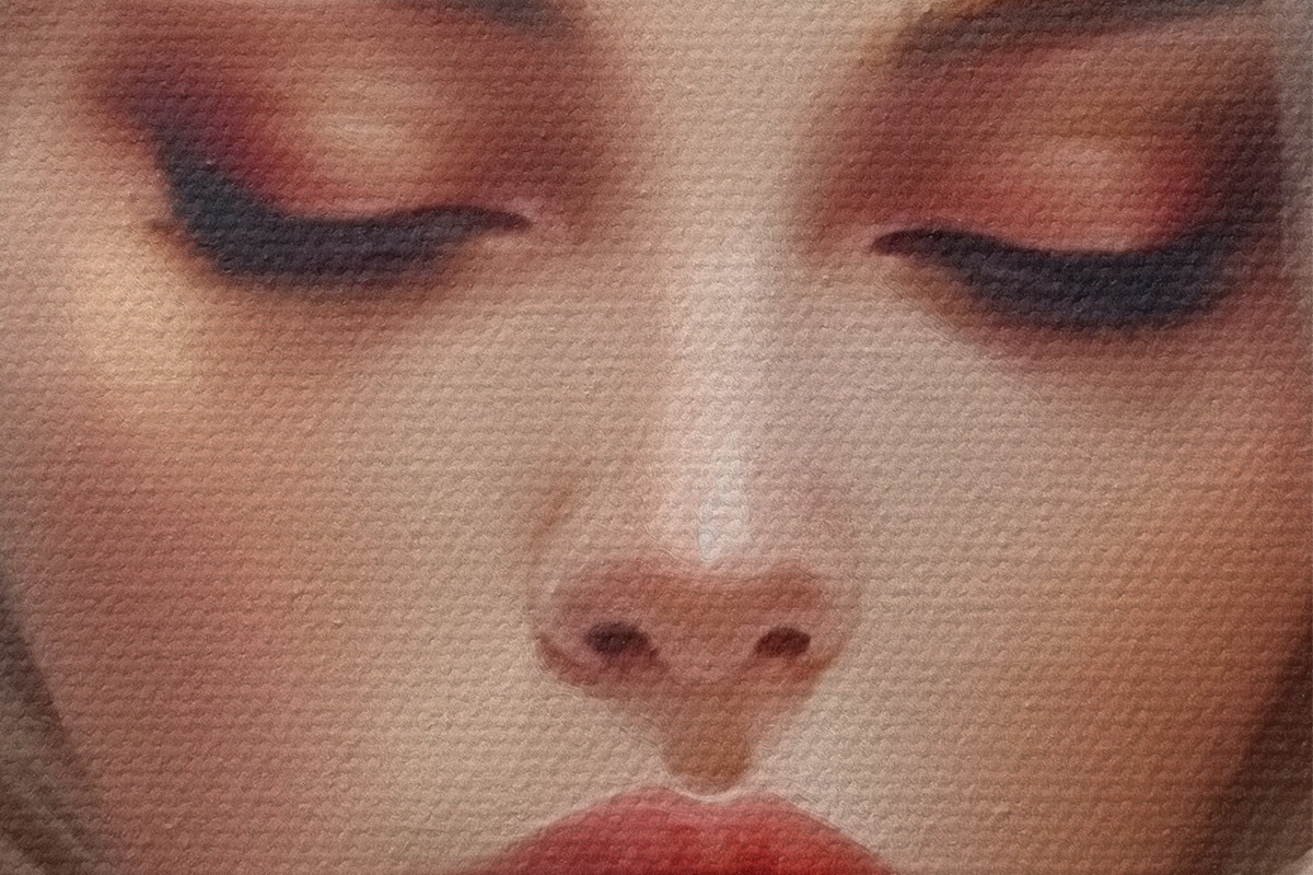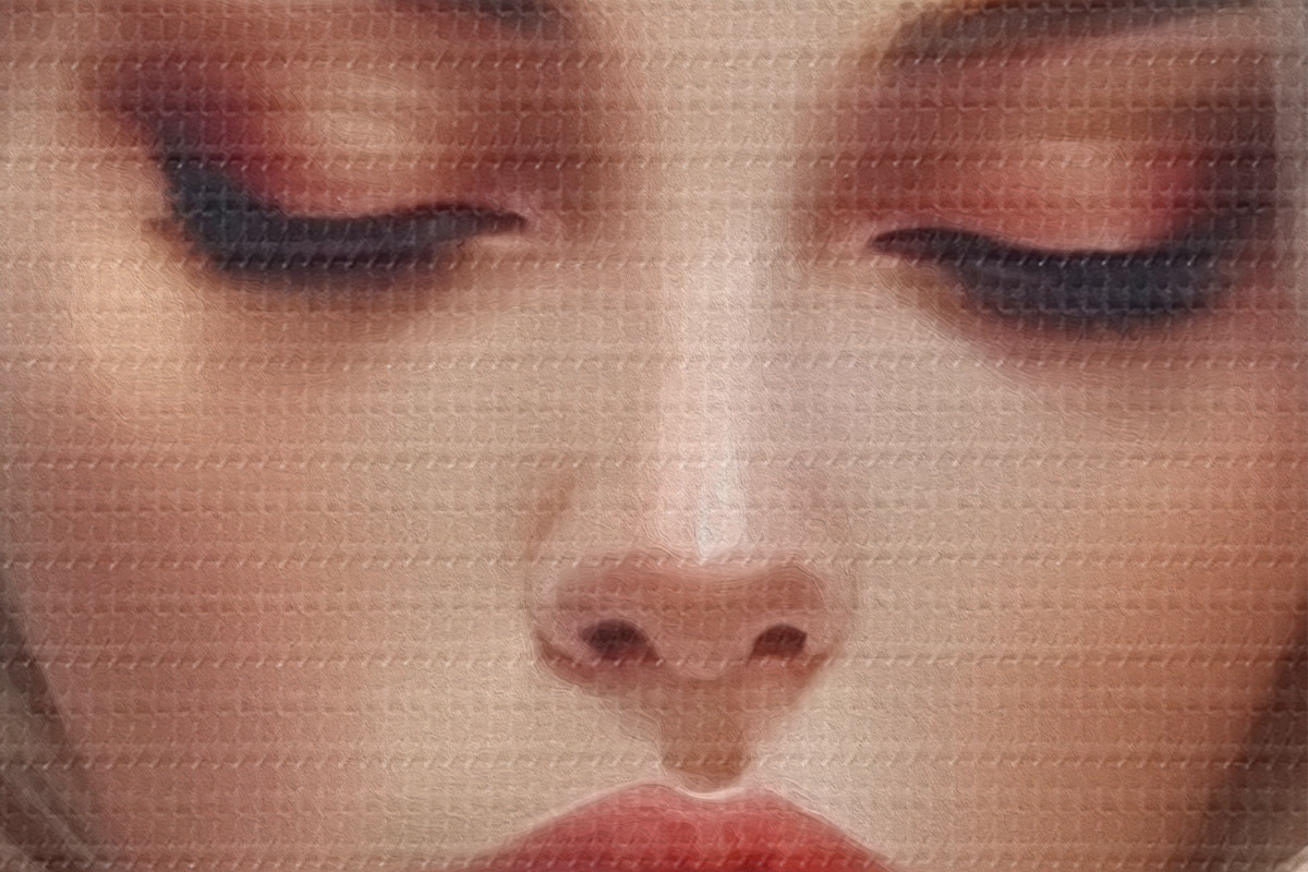 Țesătura fină a firelor de pe această pânză seamănă cu suprafața pânzelor artiștilor profesioniști.