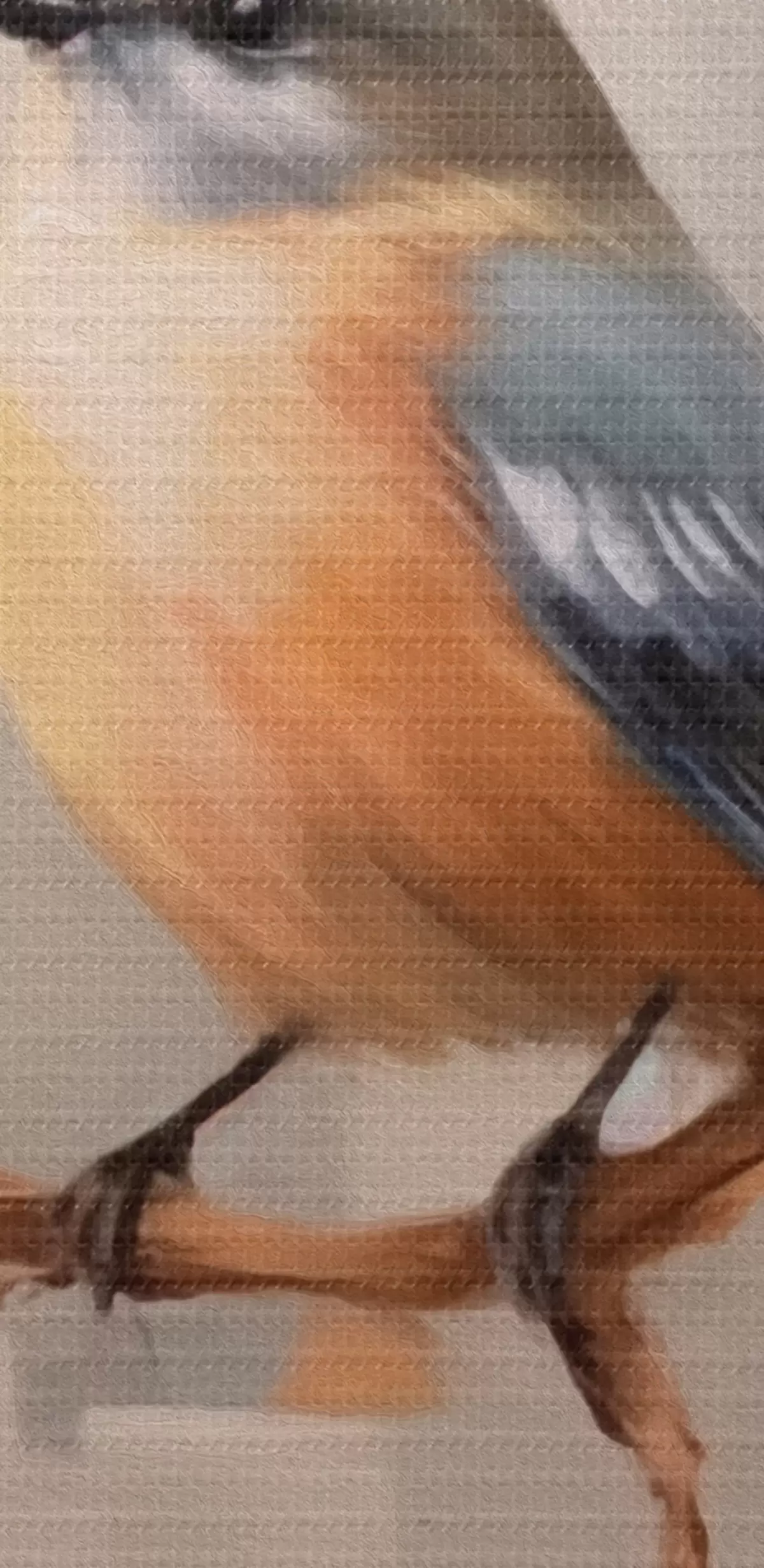 Țesătura fină a firelor de pe această pânză seamănă cu suprafața pânzelor artiștilor profesioniști.