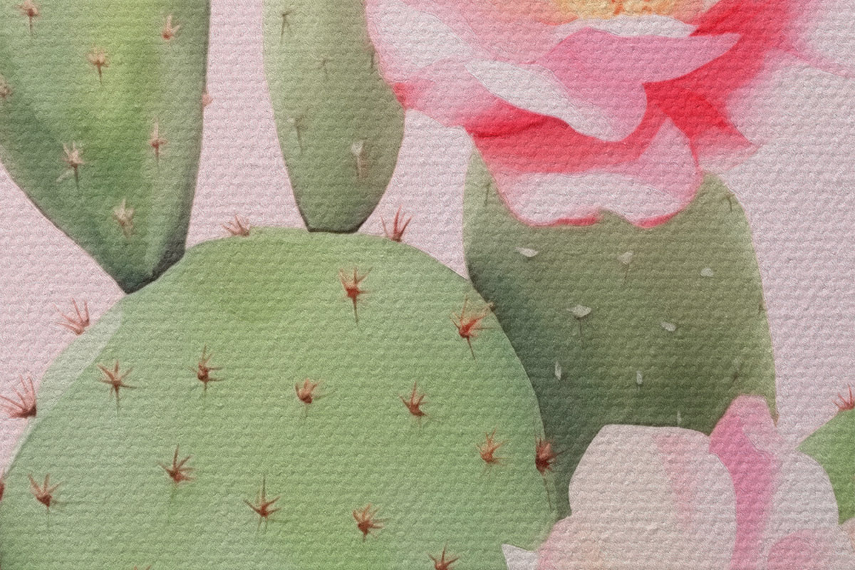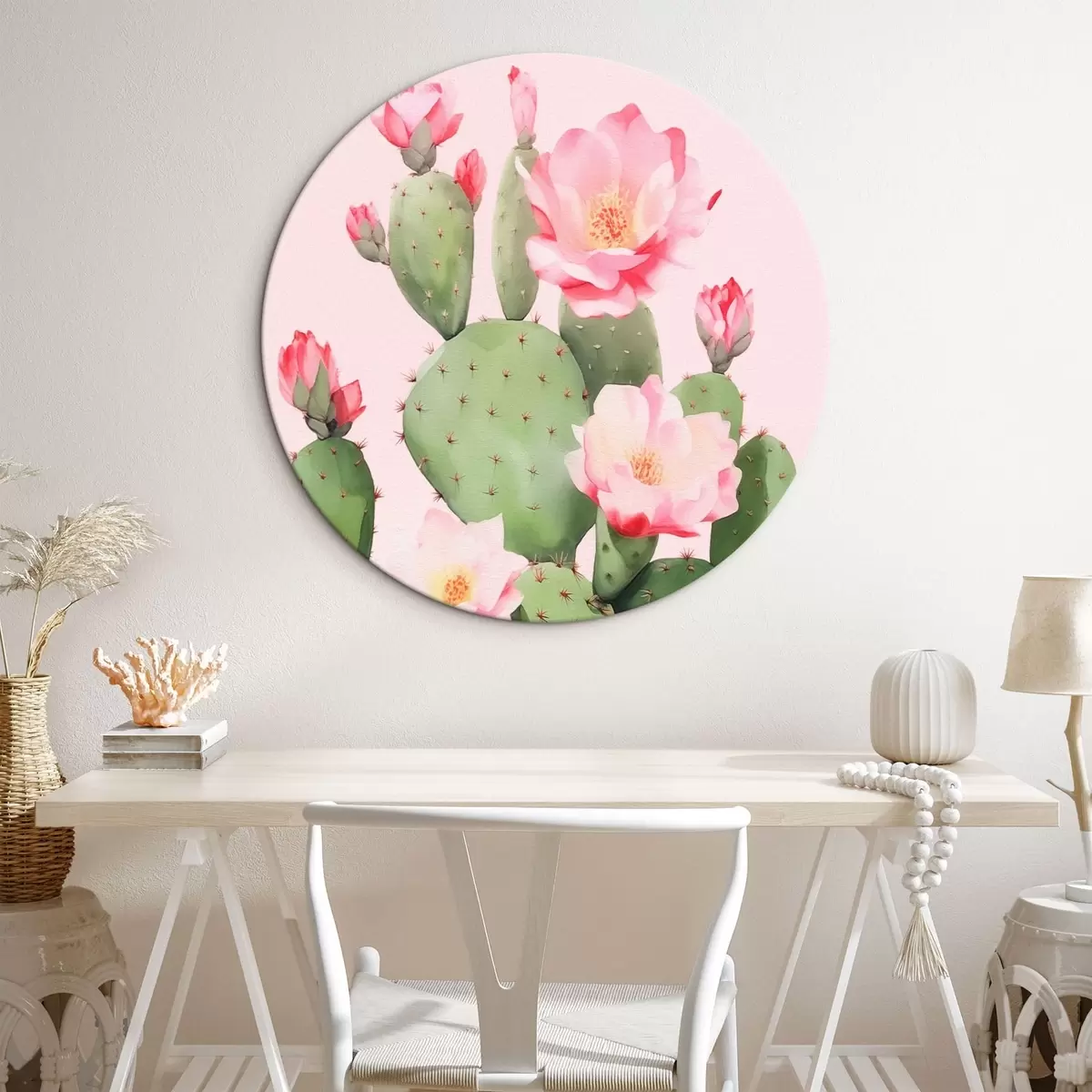 Picturi rotunde Cactus și flori roz r42313