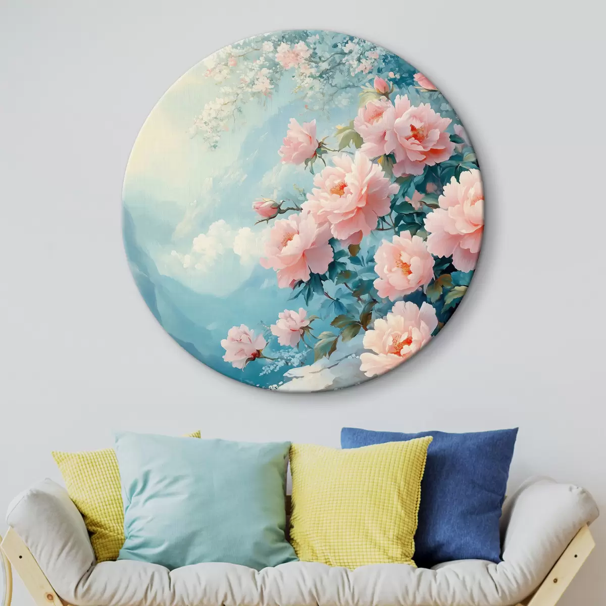 Picturi rotunde Munți albaștri și flori în prim-plan r42324