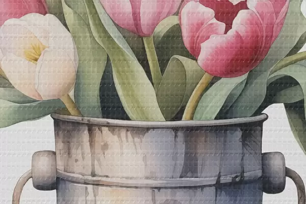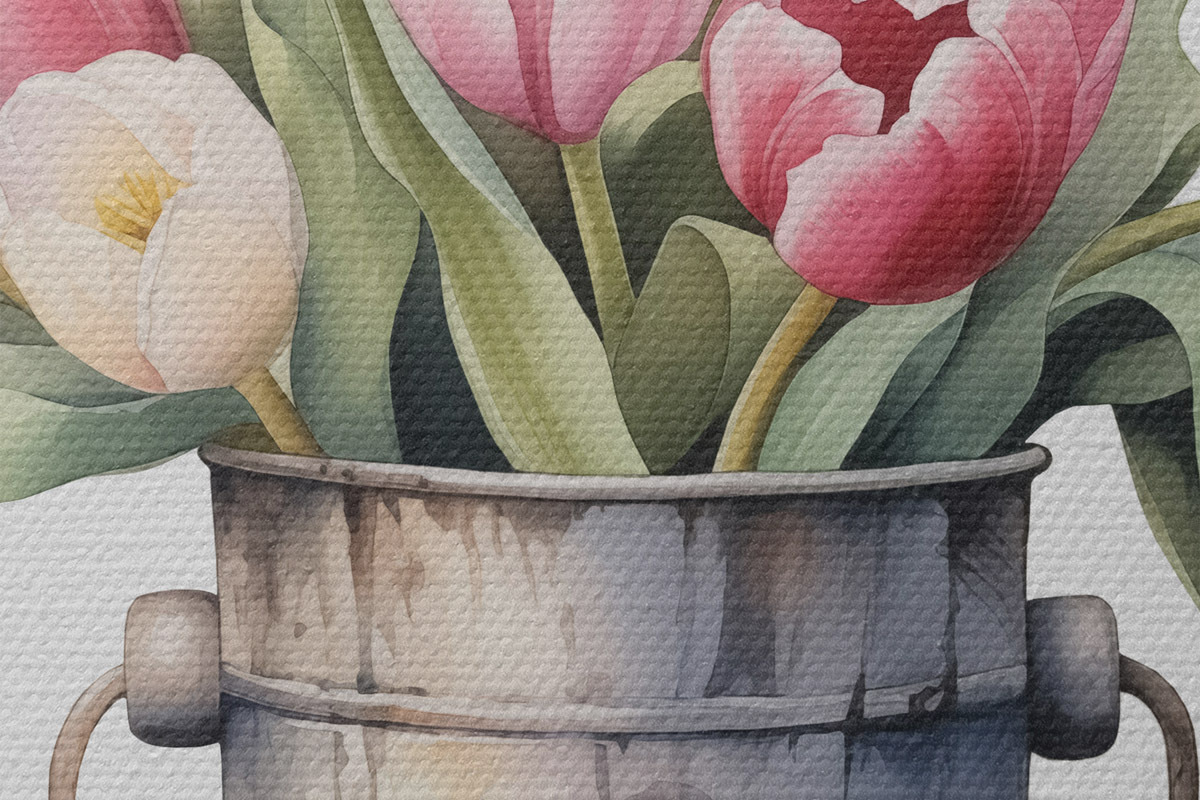 Picturi rotunde Buchet de lalele într-o găleată imitație de acuarelă Nr r42353