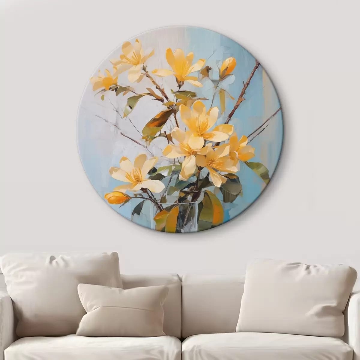 Picturi rotunde Ramuri cu flori galbene într-o vază imitație de pictură Nr r42358