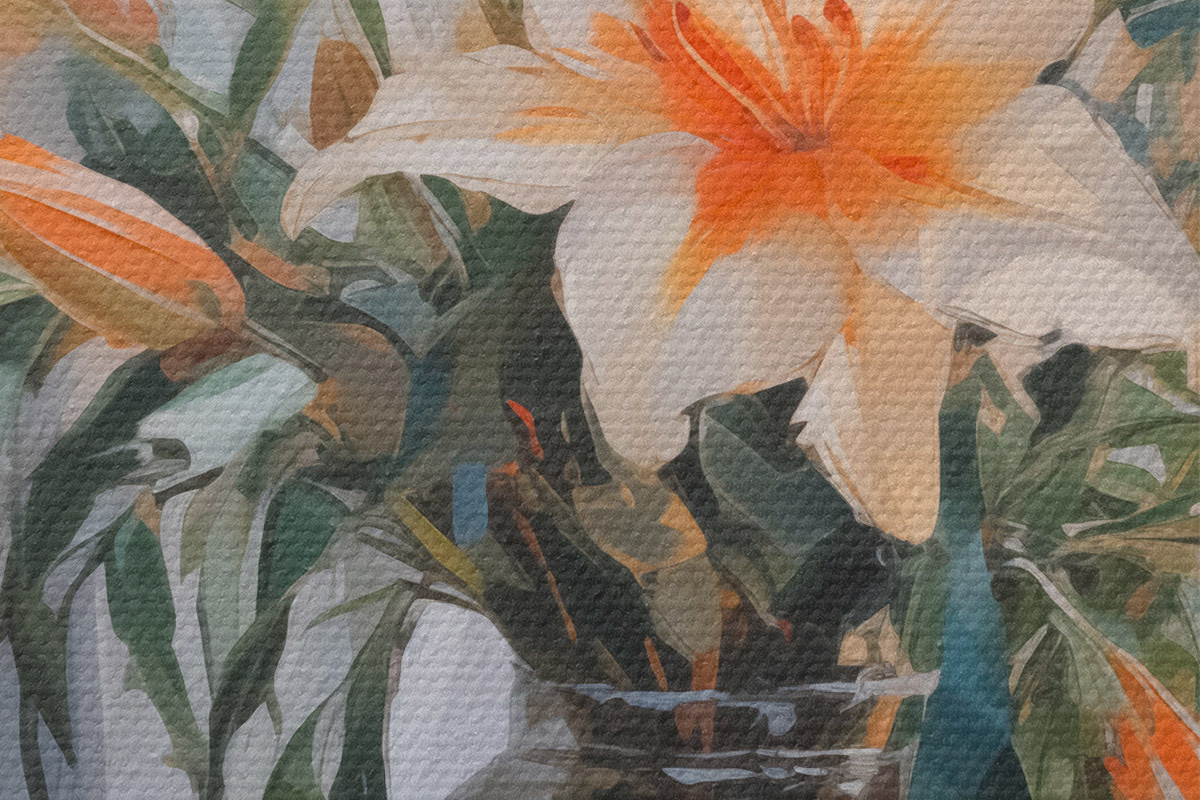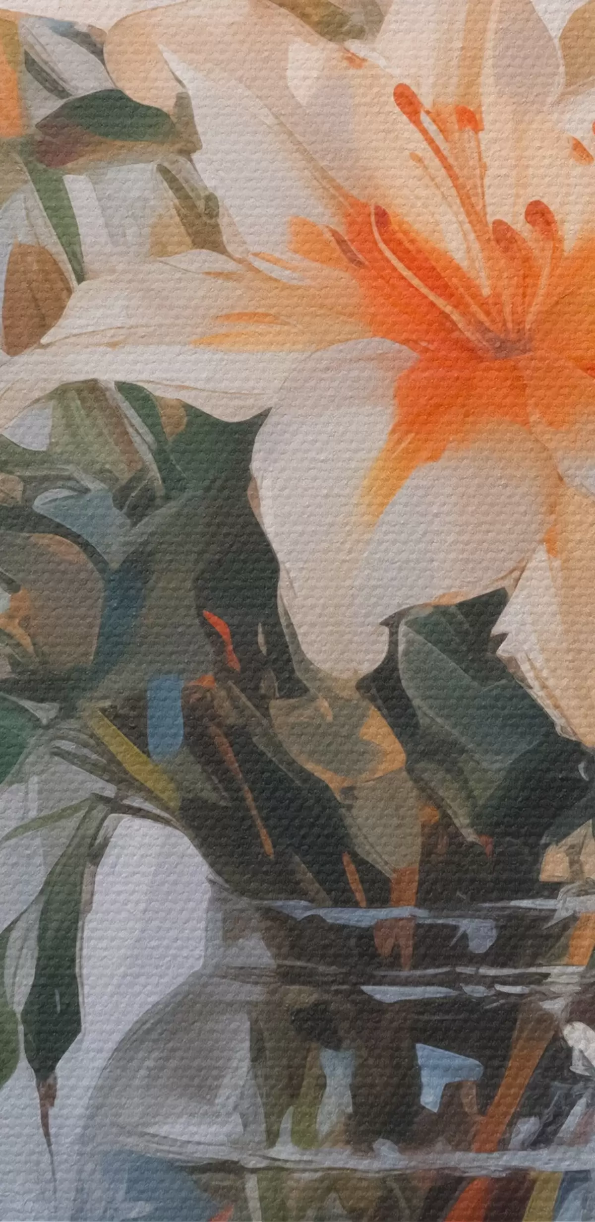 Trei tipuri de materiale sunt disponibile pentru comandă: Economic Canvas - un material dens și durabil pentru imprimarea digitală, identic cu pânza de pictor, suprafață impermeabilă, reproducere realistă a detaliilor, material cu granulație medie. Premium Canvas - textura seamănă cu cea a pânzei unui pictor (fire mici împletite). Reproducere moale, detaliată a imaginii pe o suprafață mată. Eco-Premium - țesătură 100% bumbac de înaltă calitate. Datorită fibrelor naturale de bumbac, materialul este durabil și rezistent la uzură. Reproducere excelentă a culorilor și a detaliilor.