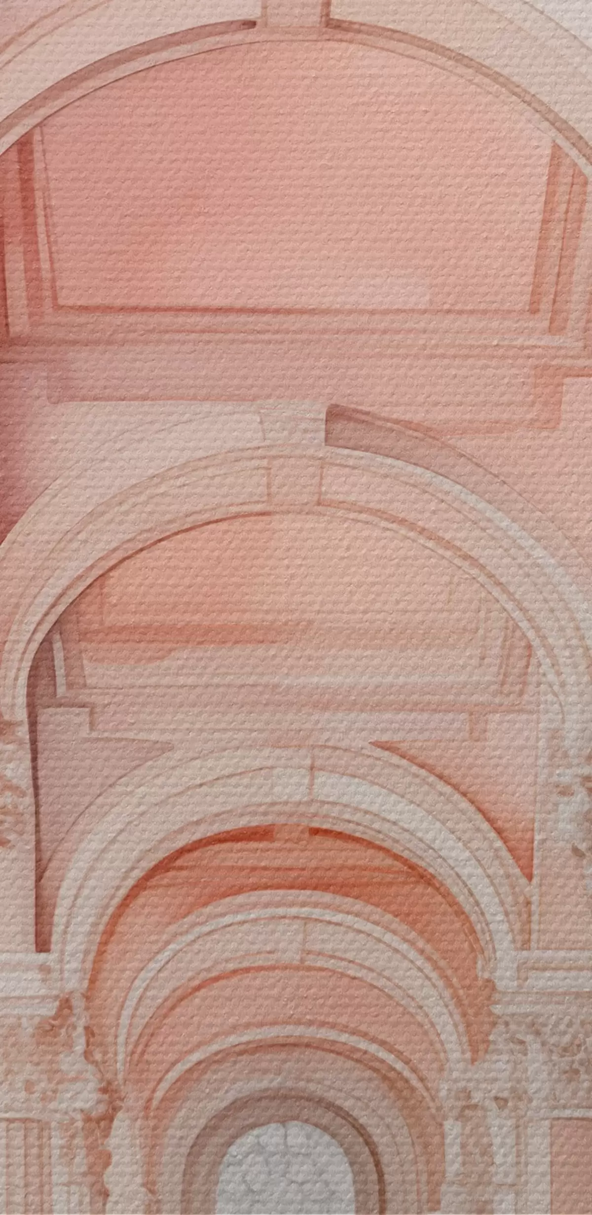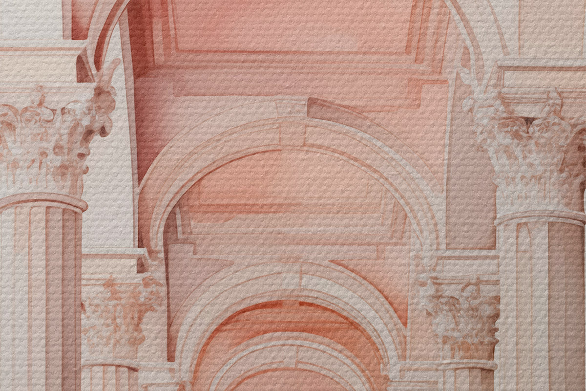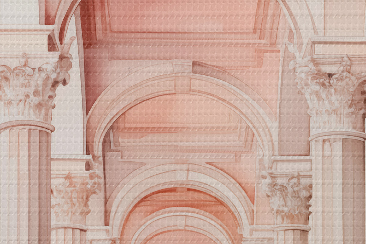Picturi rotunde Structură arhitecturală cu coloane imitație de acuarelă Nr r42361