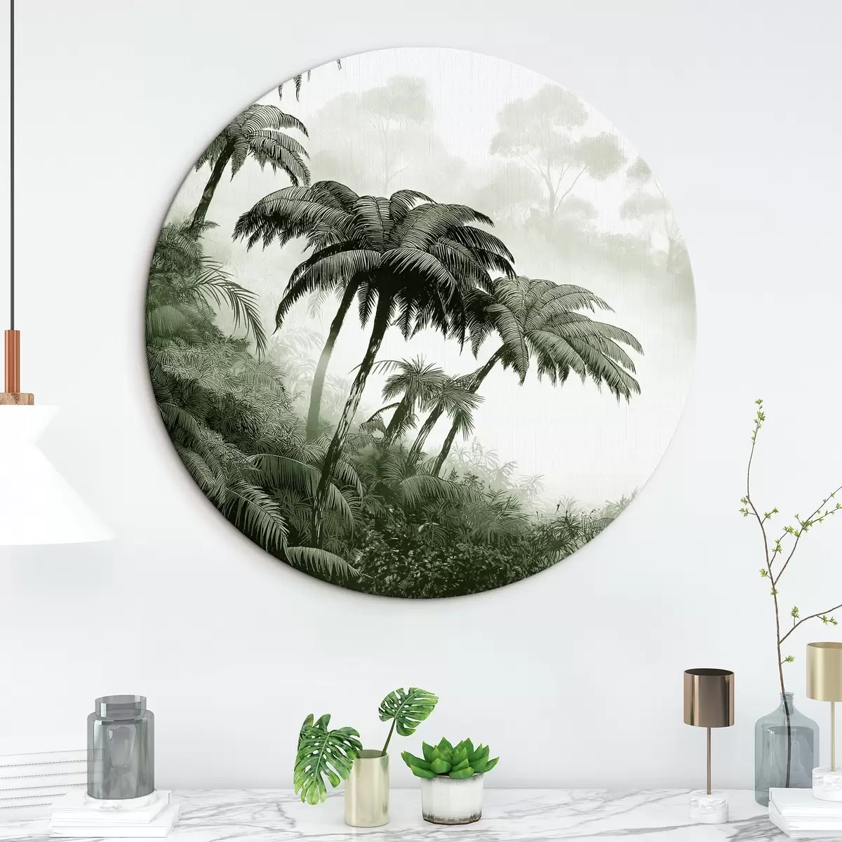 Picturi rotunde Jungla pădure în ceață, palmieri, natura, culori verzi Nr r42372v1