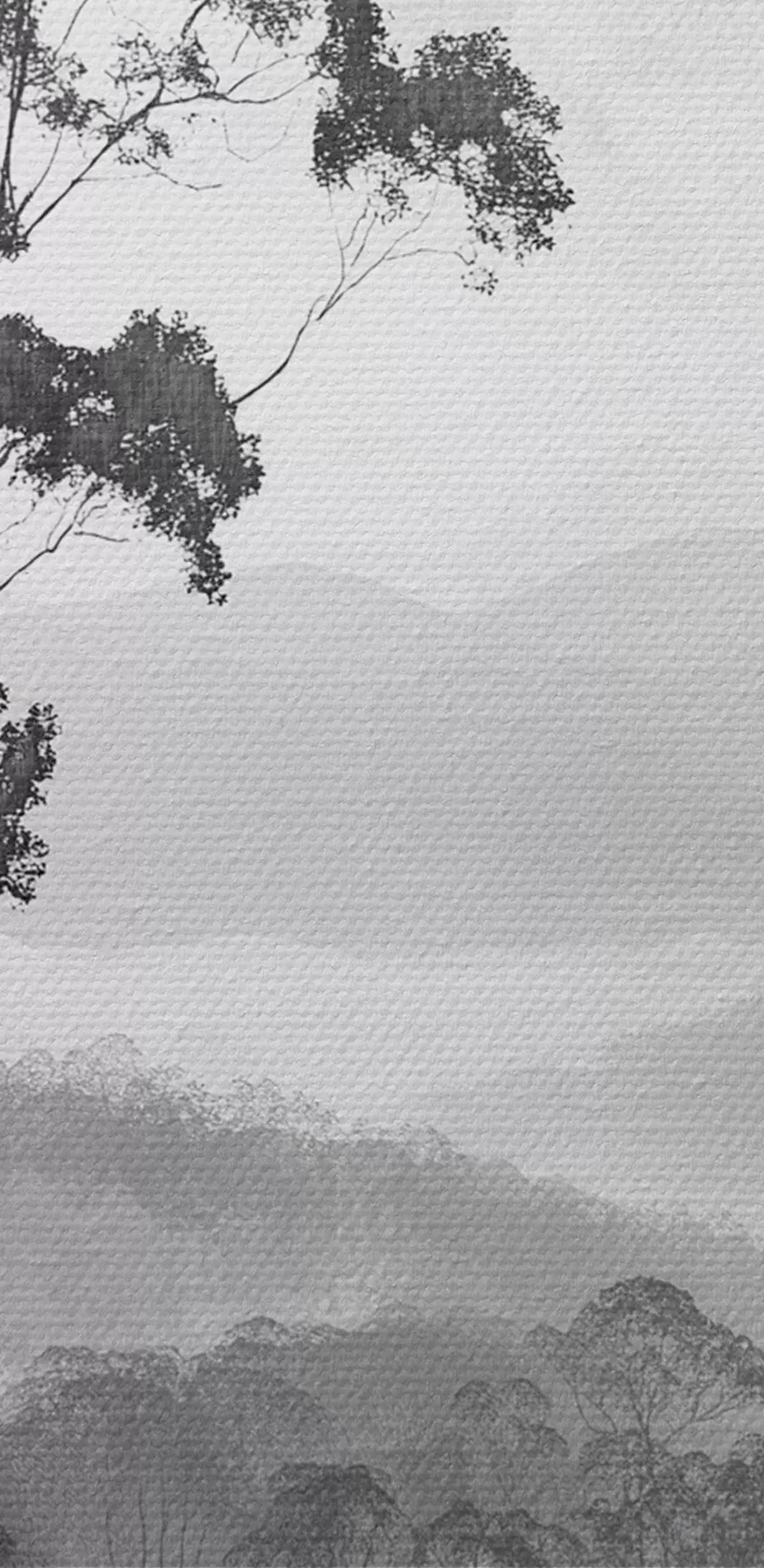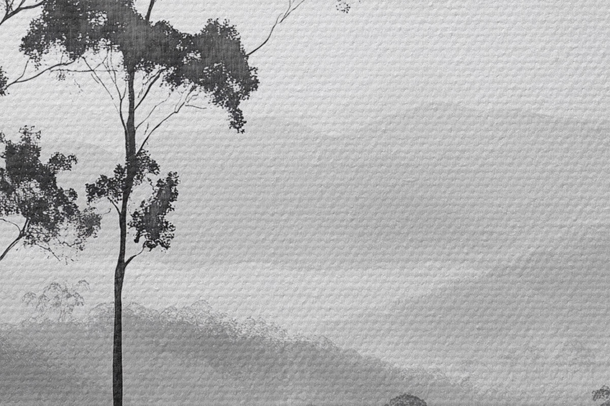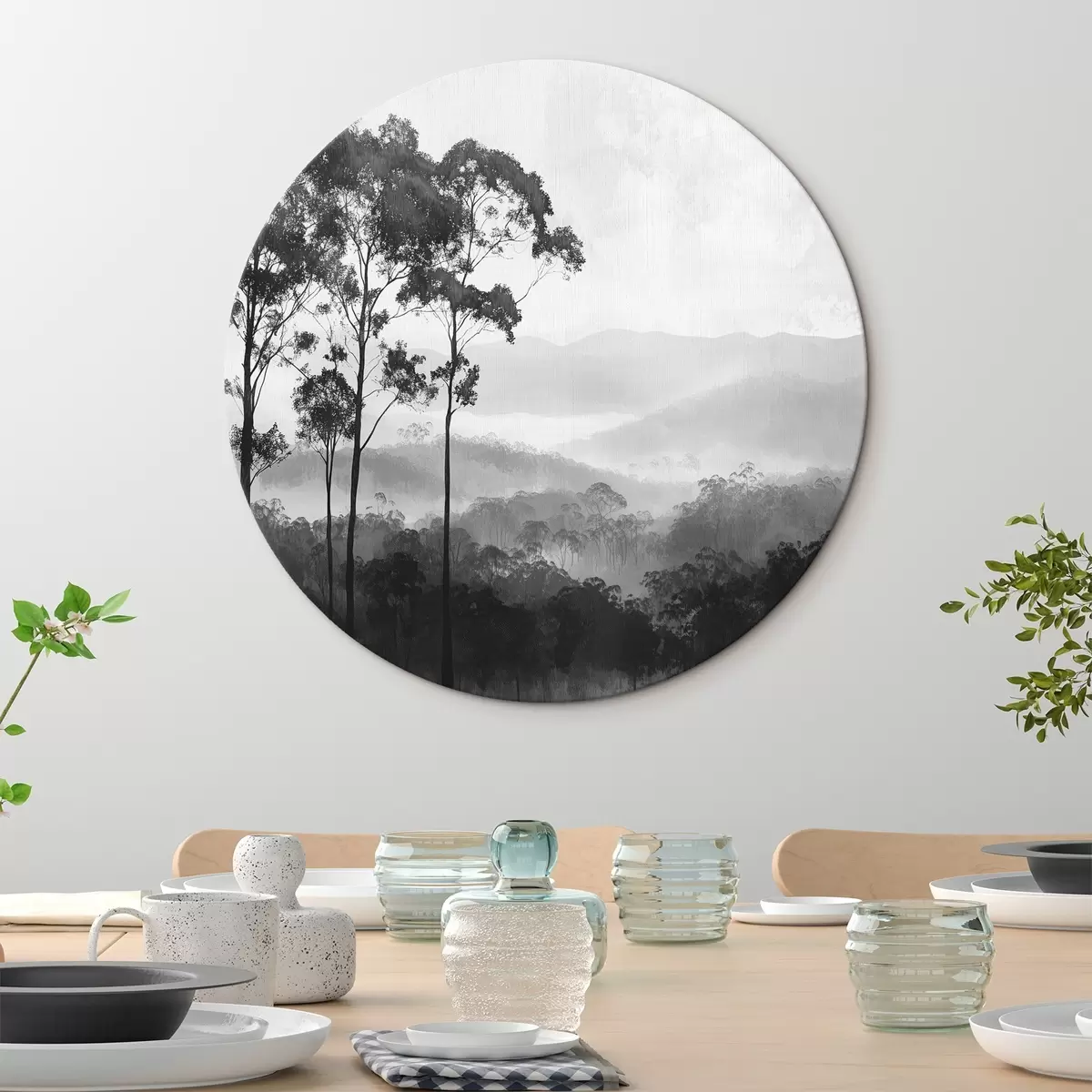 Picturi rotunde Pădure mistică în tonuri de gri, peisaj natural, copaci Nr r42373