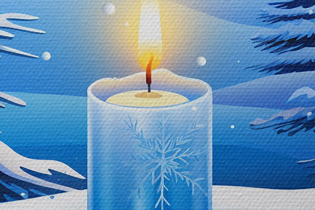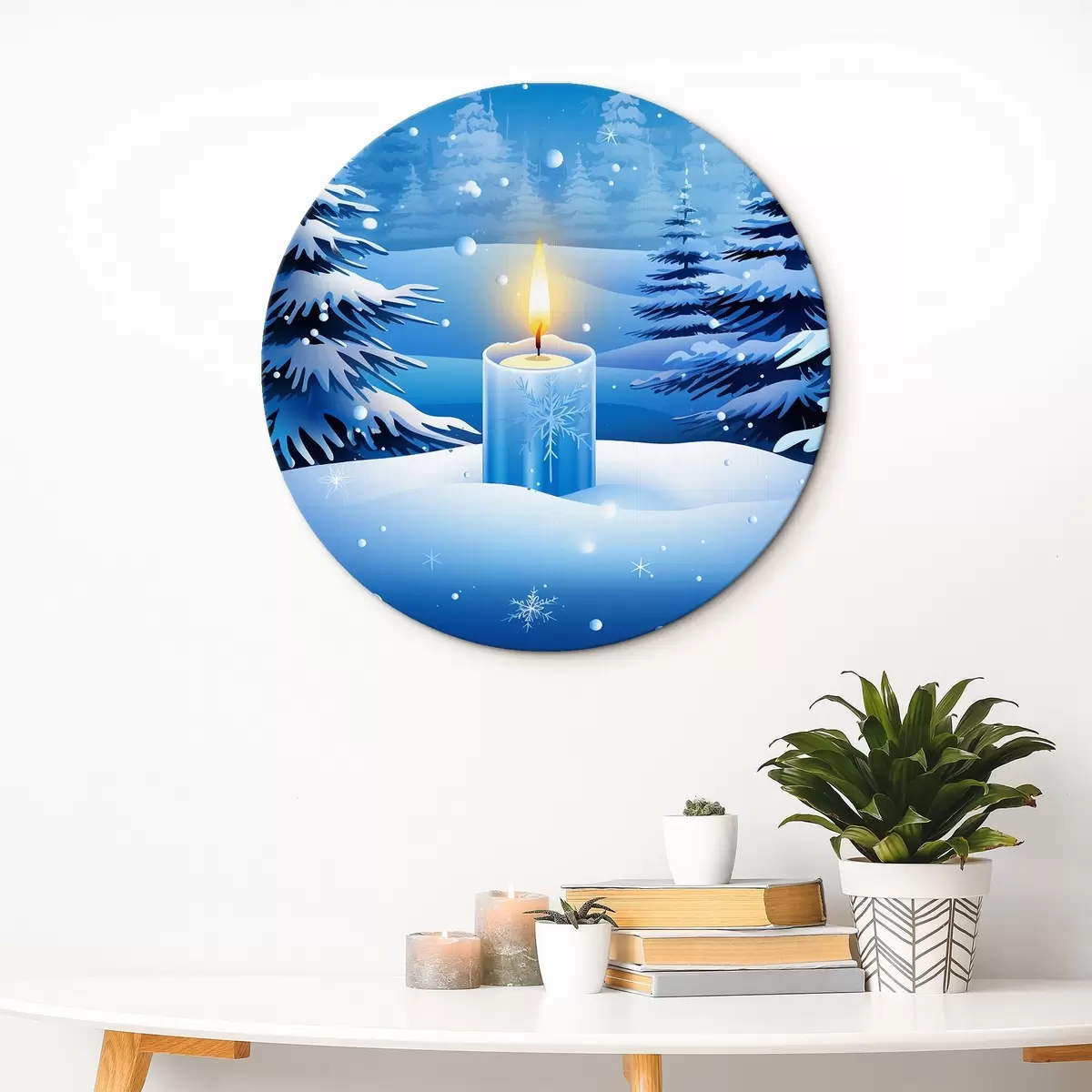Picturi rotunde Lumânare pe fundalul unei păduri înzăpezite de iarnă Nr r42383